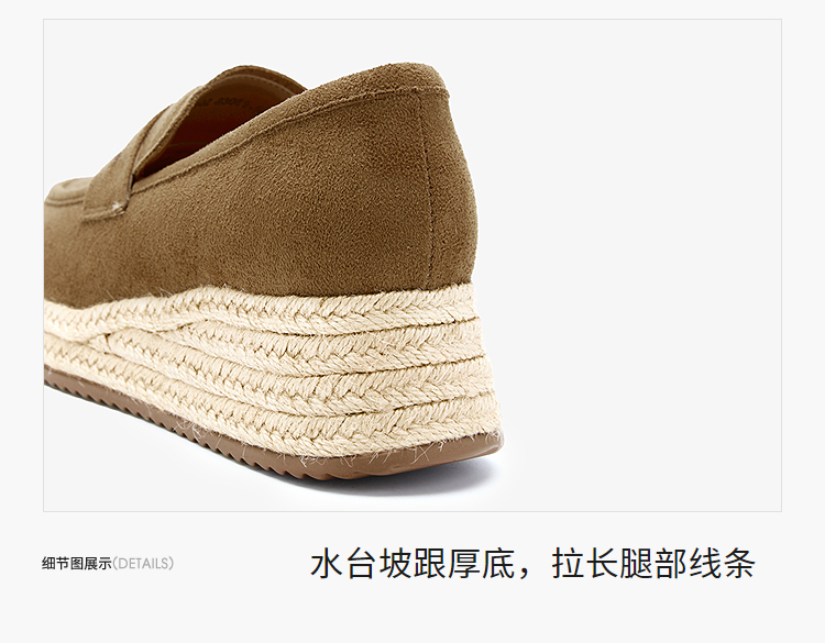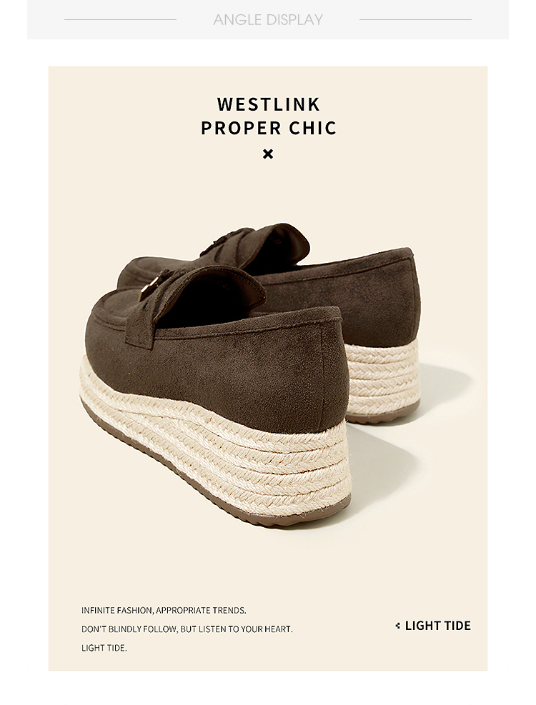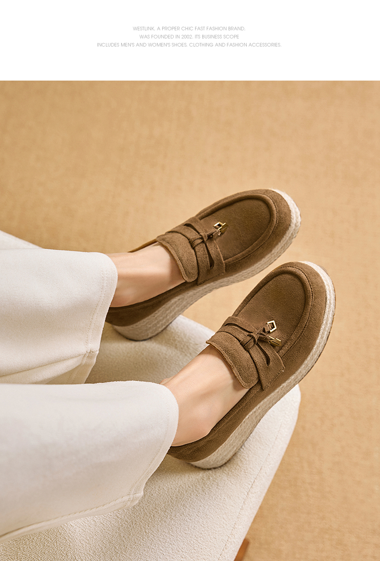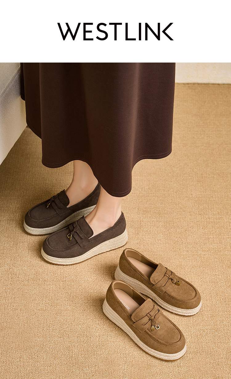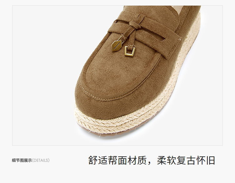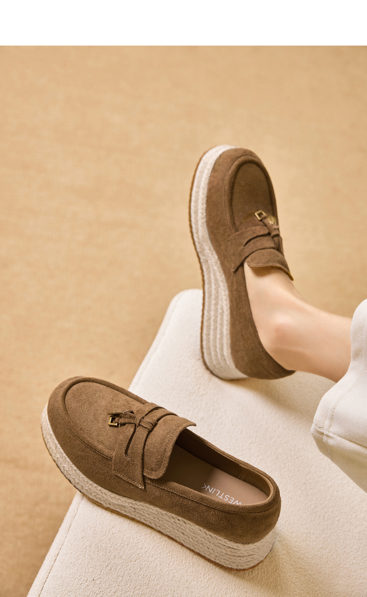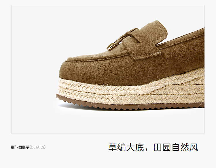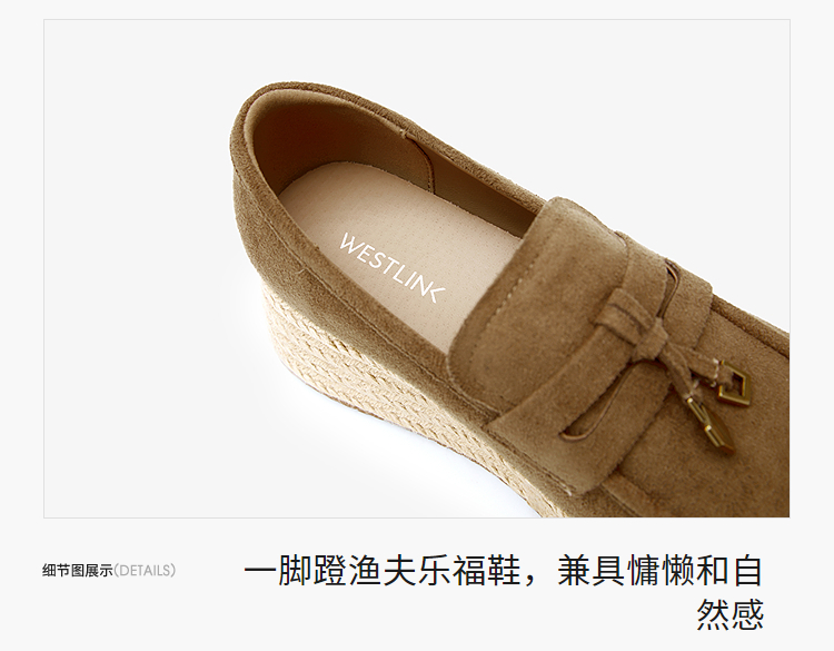 【限时秒杀】西遇厚底乐福鞋女秋新款老钱风一脚蹬草编渔夫鞋坡跟增高单鞋V1857102
