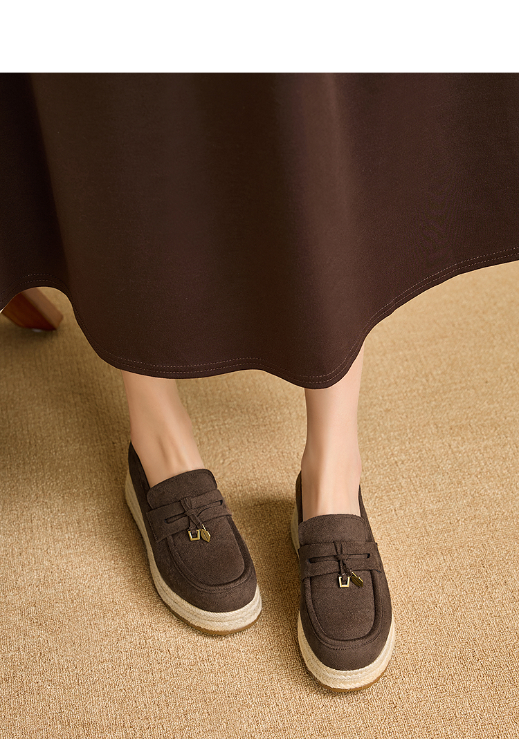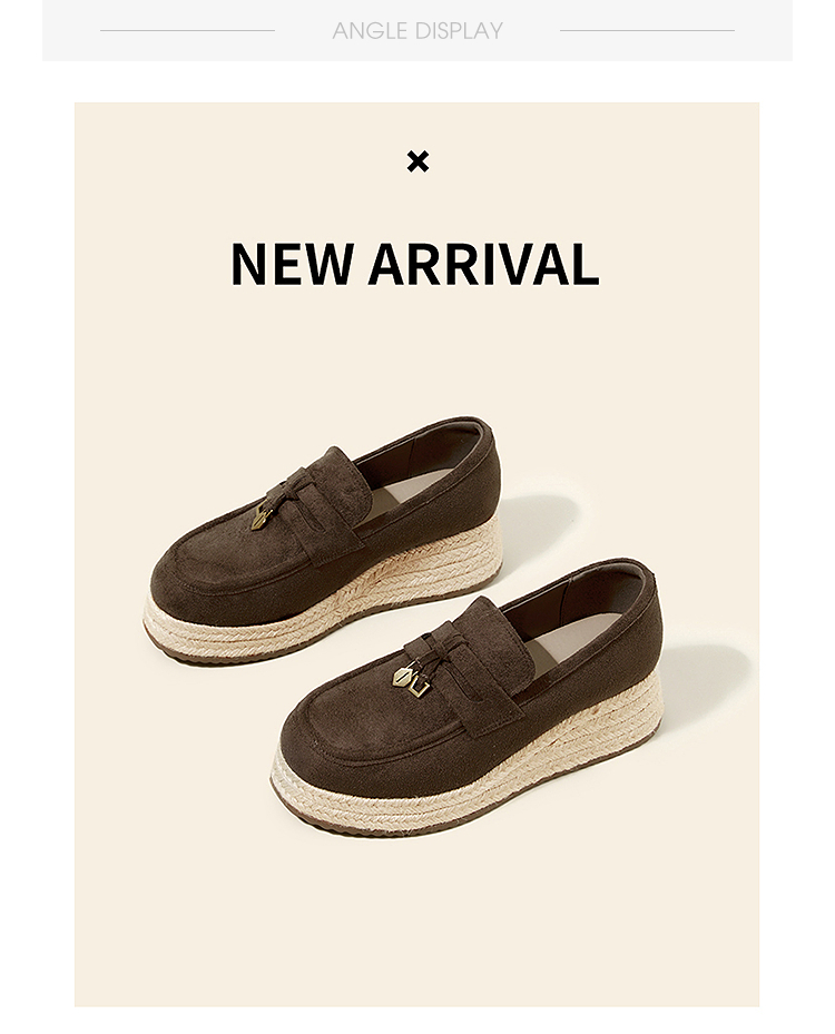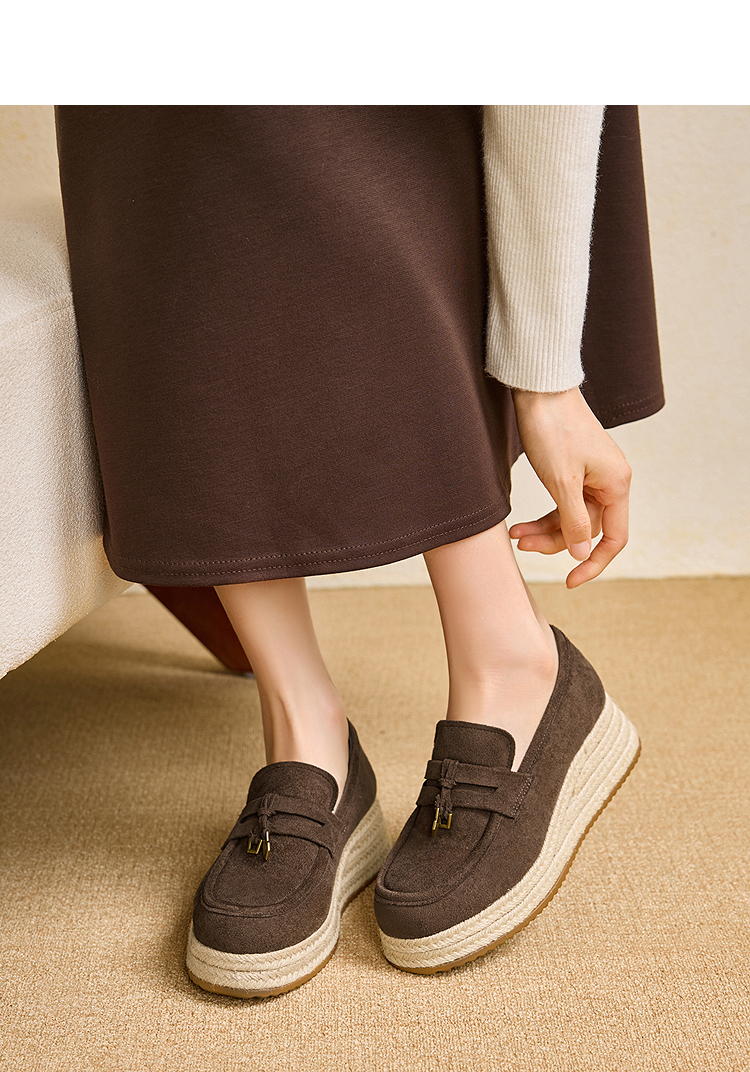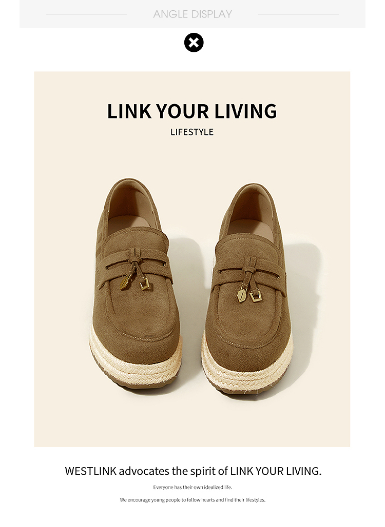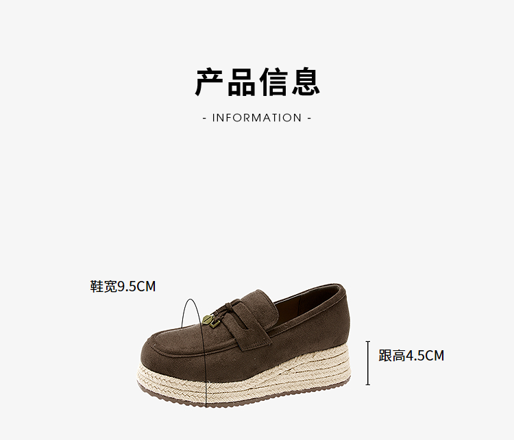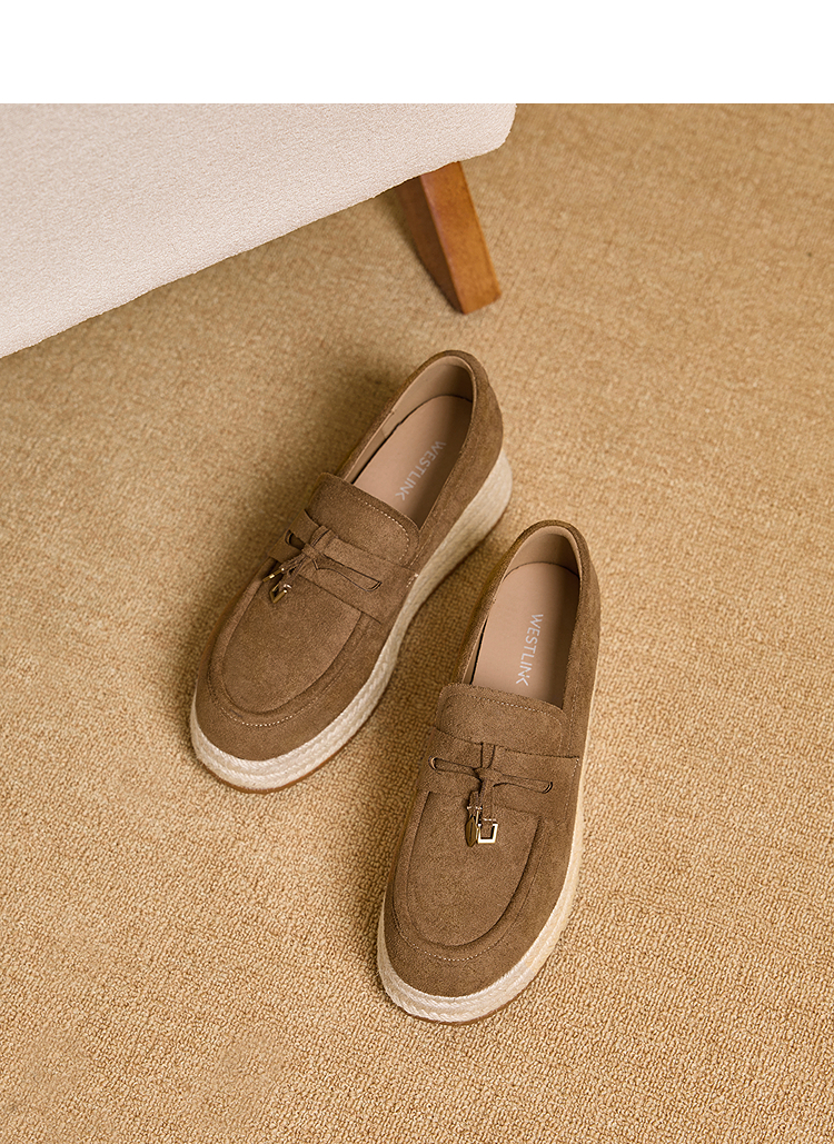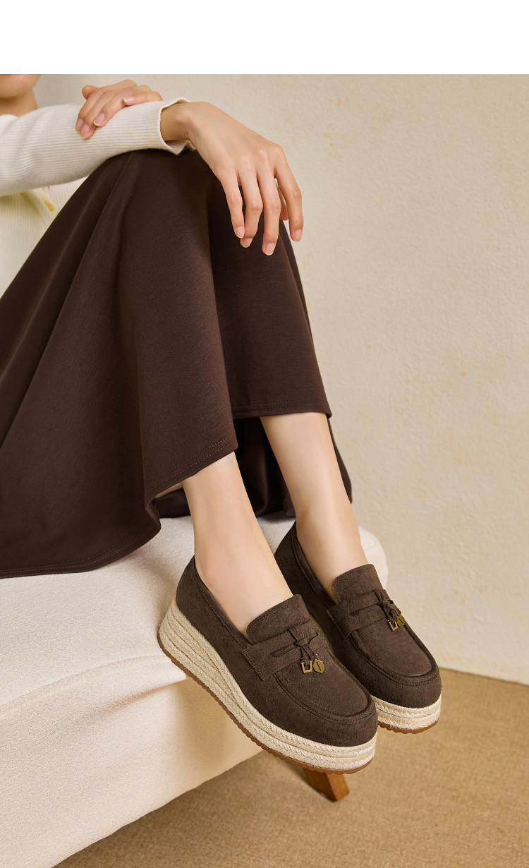 【限时秒杀】西遇厚底乐福鞋女秋新款老钱风一脚蹬草编渔夫鞋坡跟增高单鞋V1857102