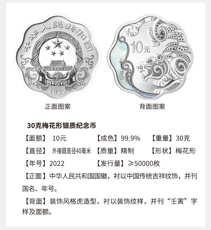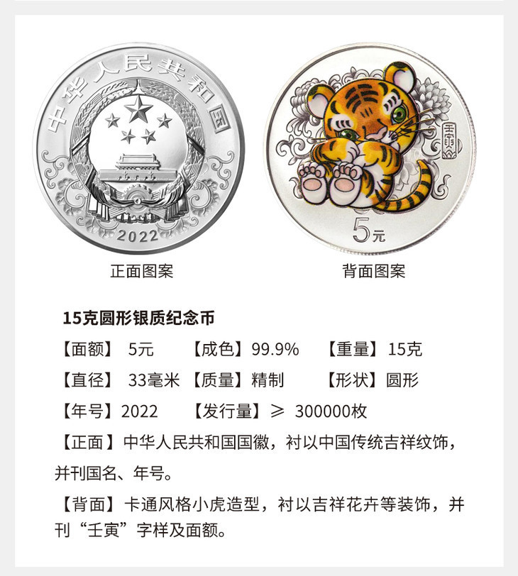 2022虎年生肖150克彩色方银