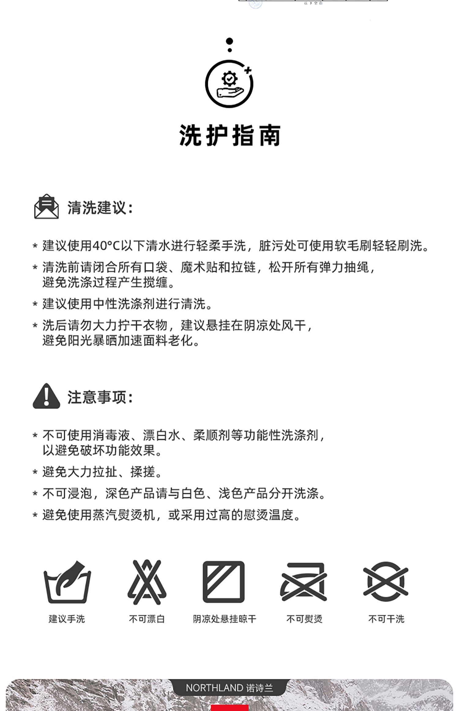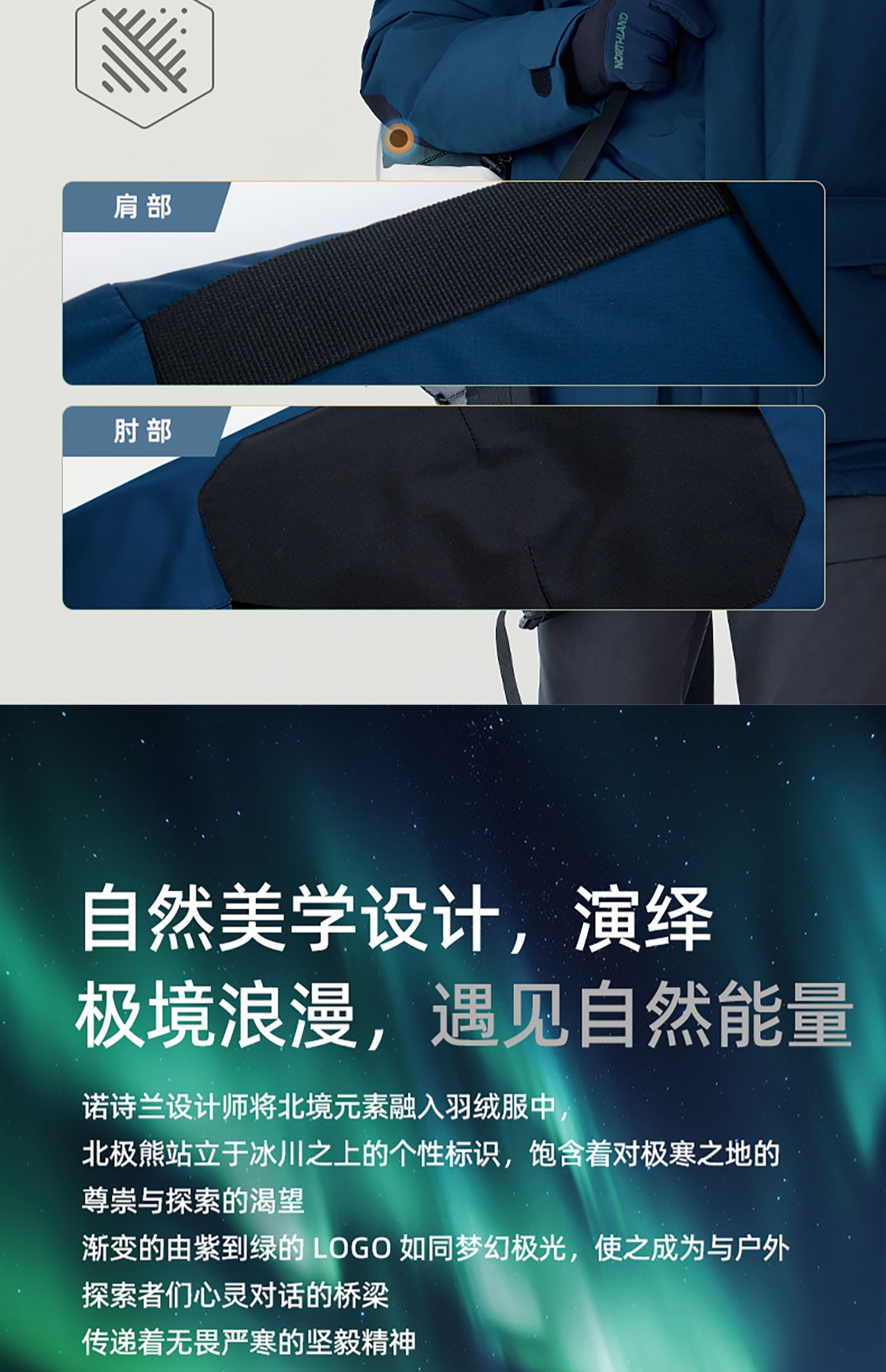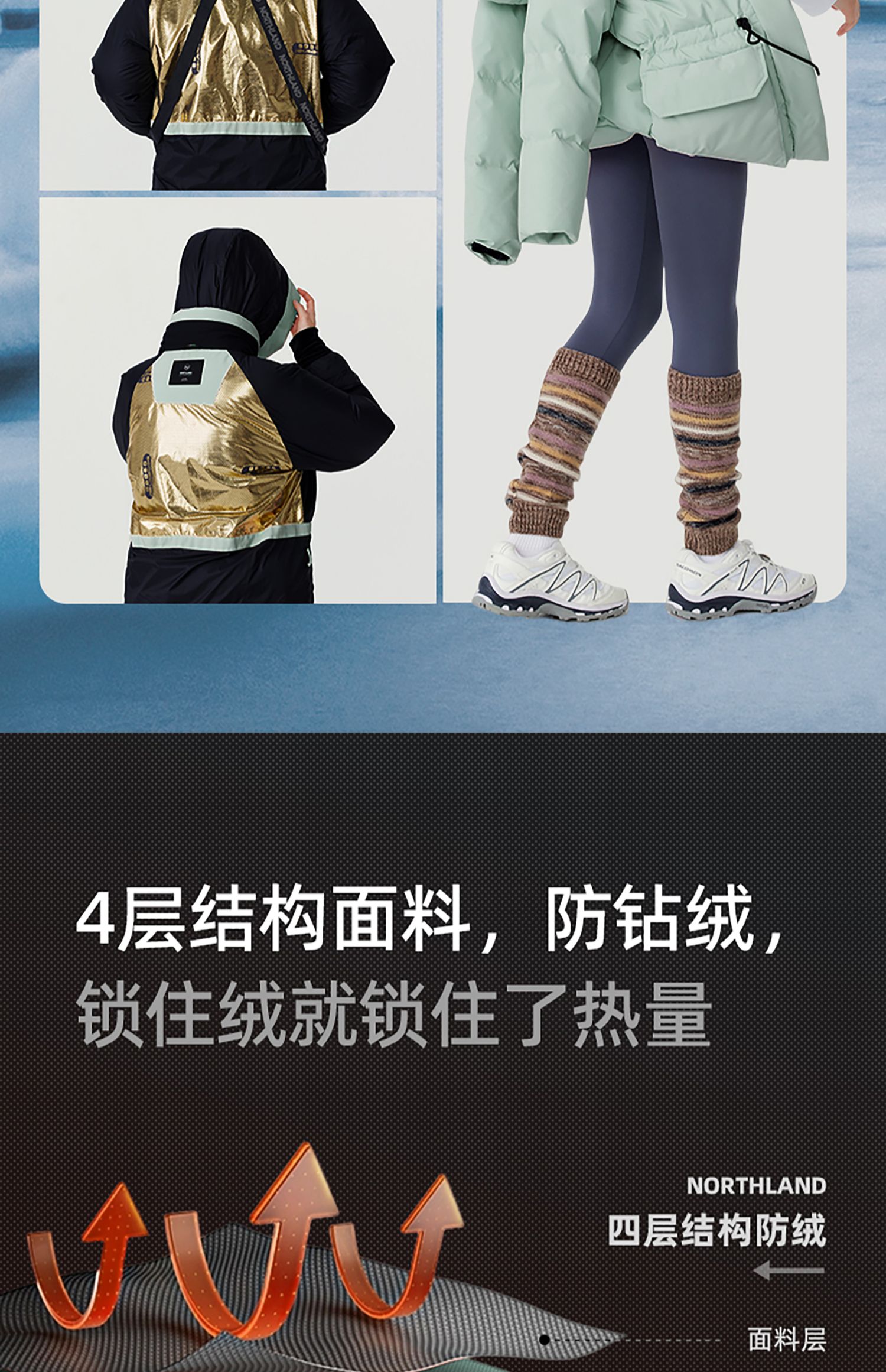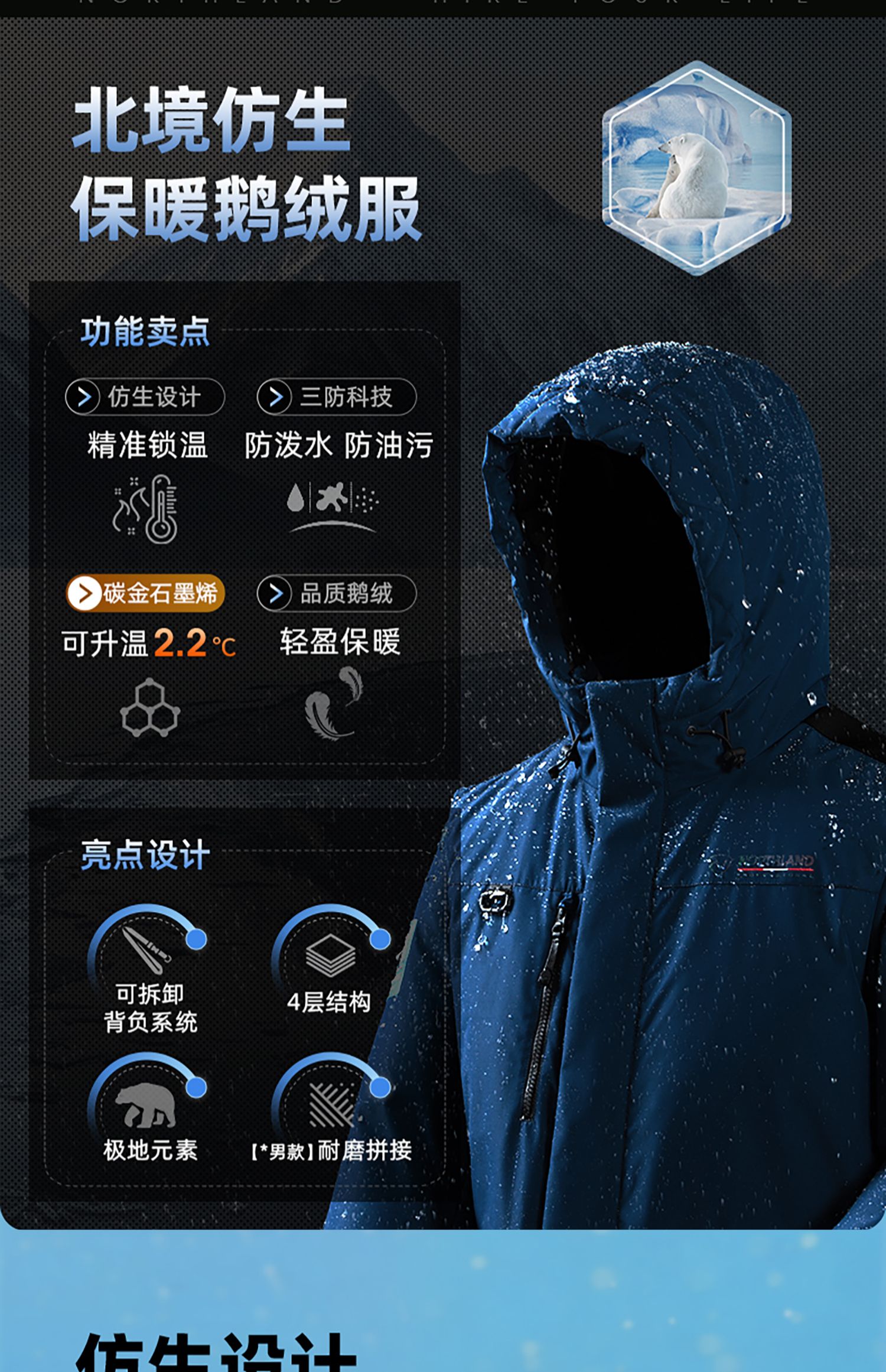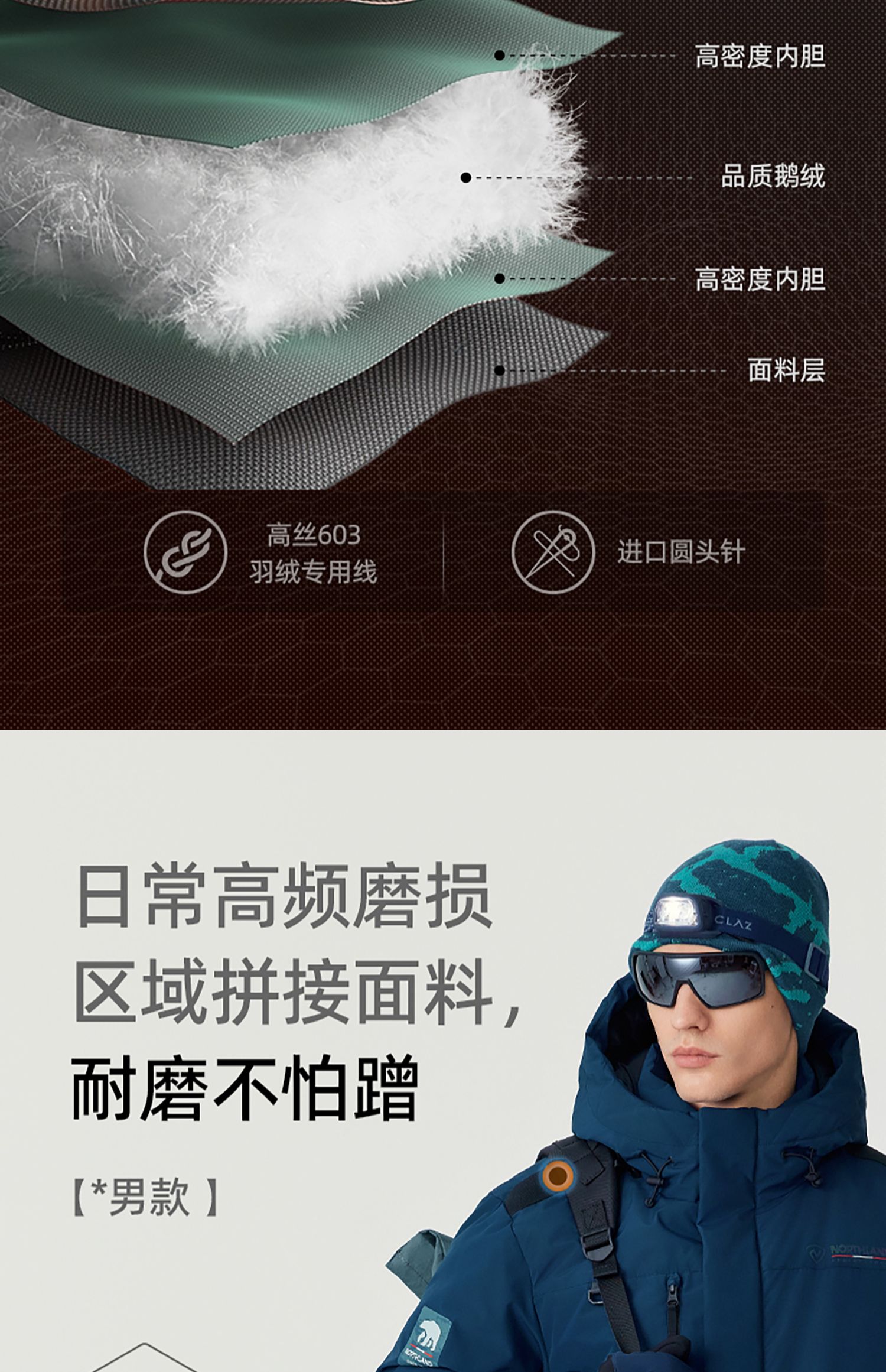 | 【面料成分】 面料100%聚酯纤维 里料100%锦纶 填充:80鹅绒 局部填充(帽子):100%聚酯纤维 |