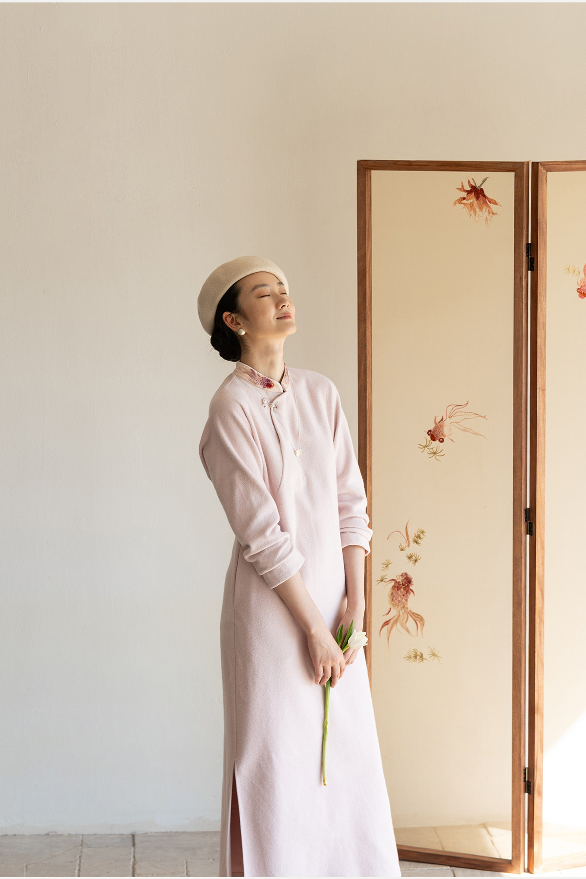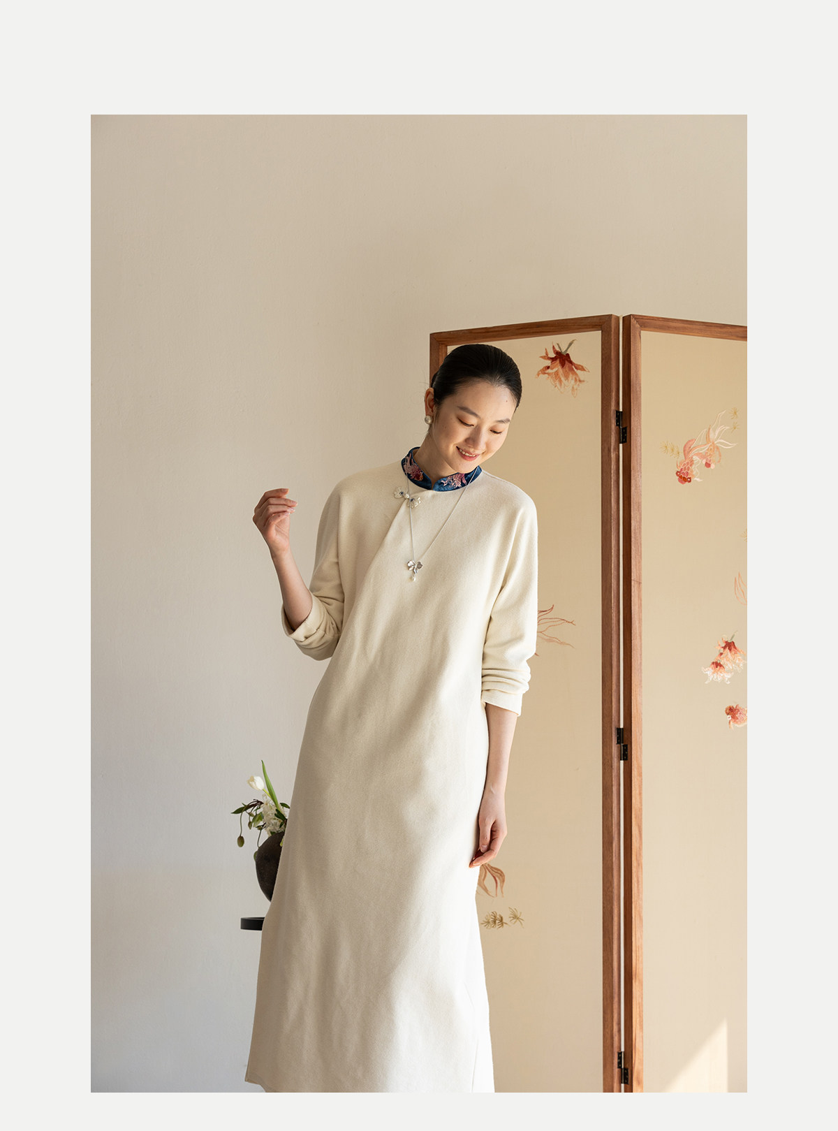 牧衣游原创 金鱼手工刺绣棉质连衣裙舒适宽松中式改良旗袍 长物
