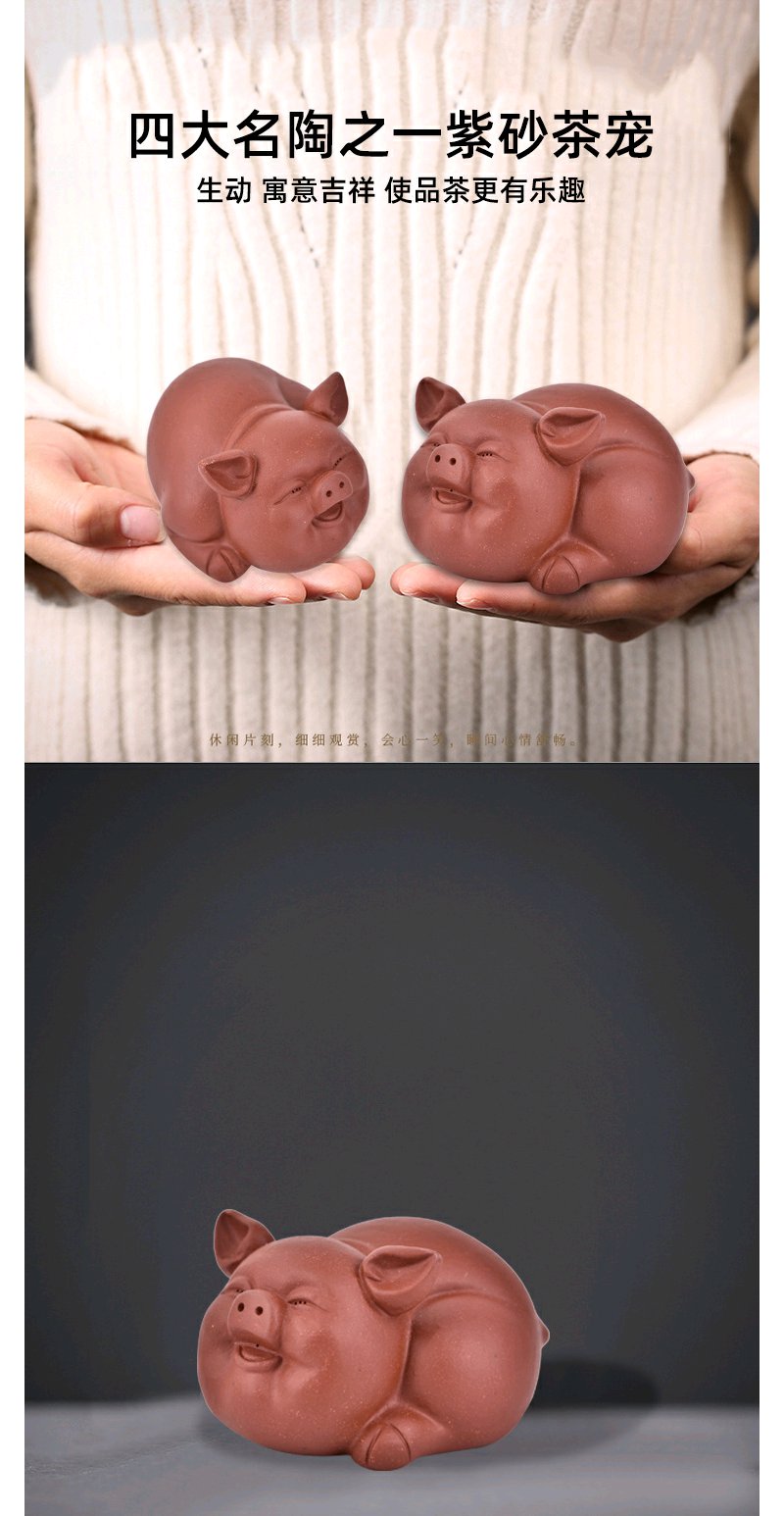 智慧洪福齐天紫砂可养茶宠可爱小猪茶玩茶艺茶盘小摆件