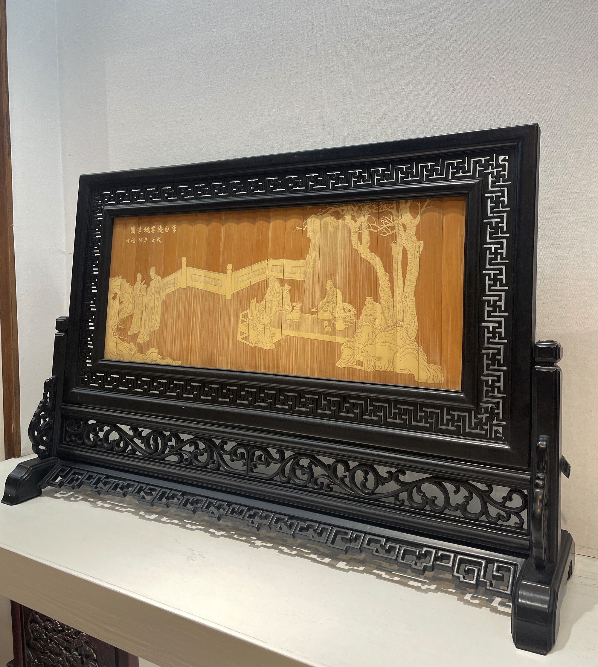 李白宴夜桃李图°留青雕屏风
