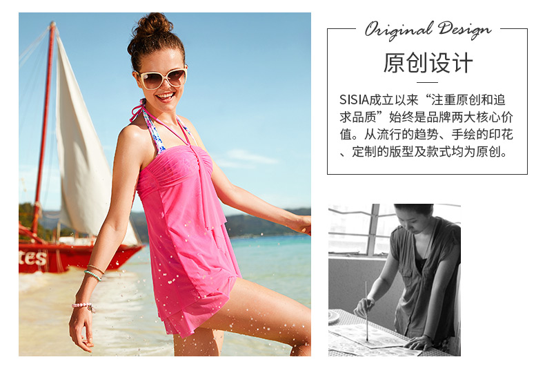 sisia分体泳衣女保守微胖女孩遮肚显瘦高级感长袖防晒泳衣泳裤女