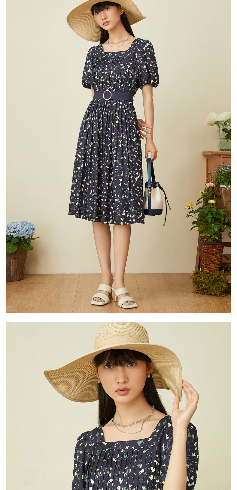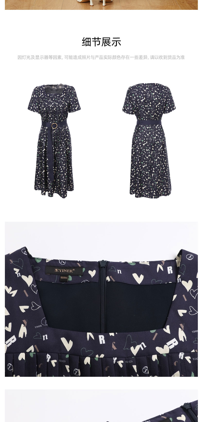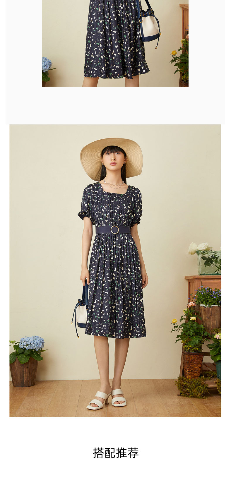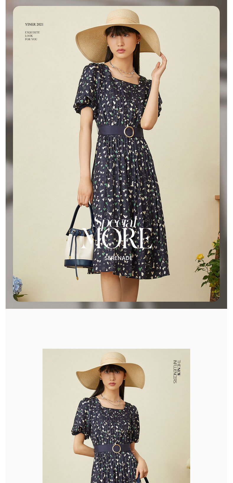 音儿女装2022夏季新款法风收腰方领真丝连衣裙8c32205760