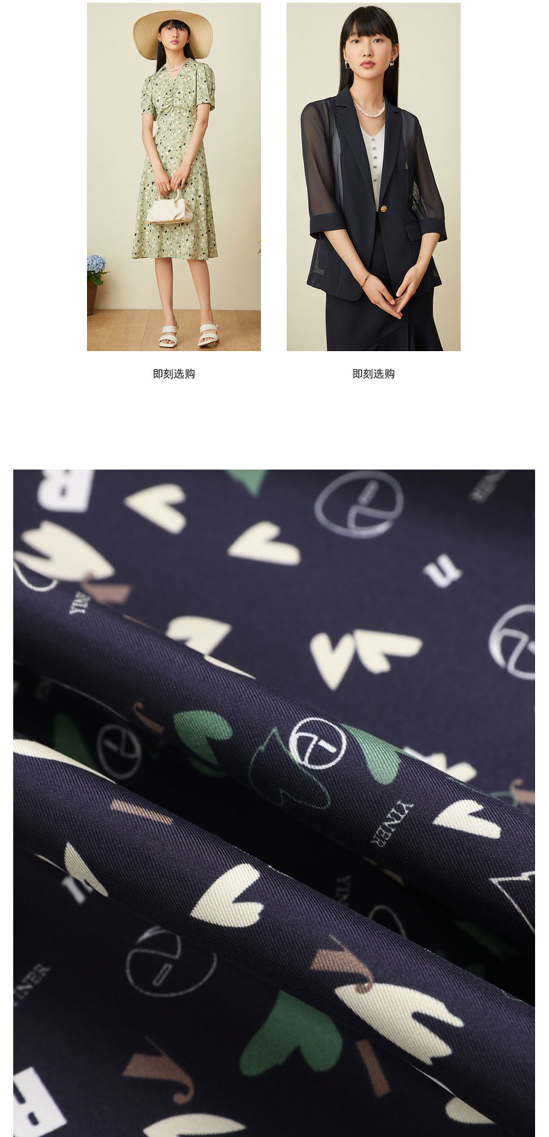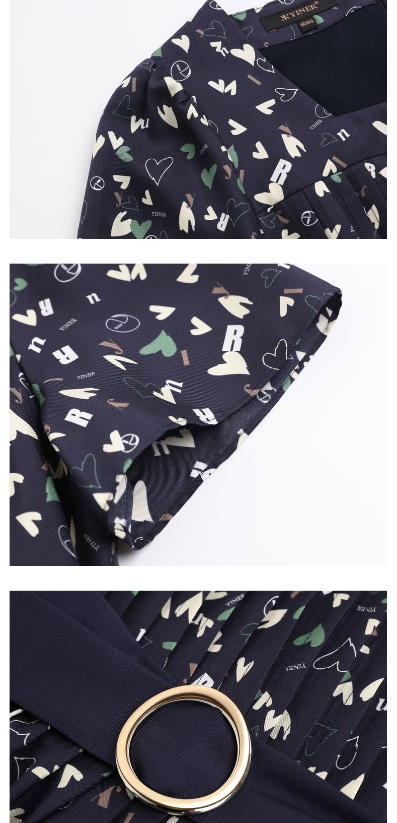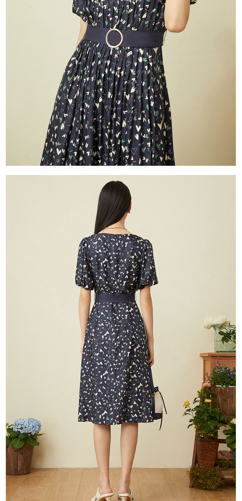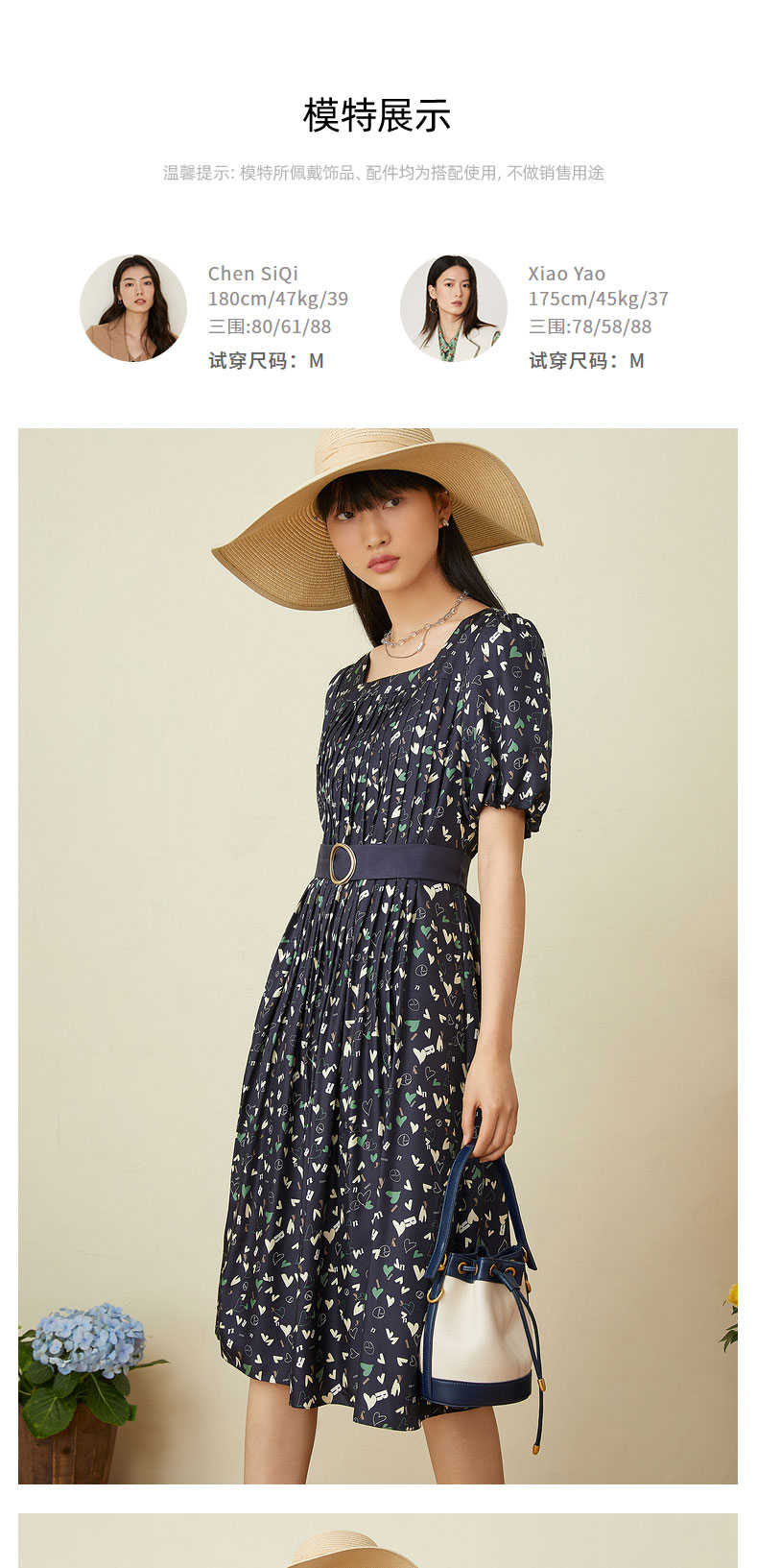 音儿女装2022夏季新款法风收腰方领真丝连衣裙8c32205760