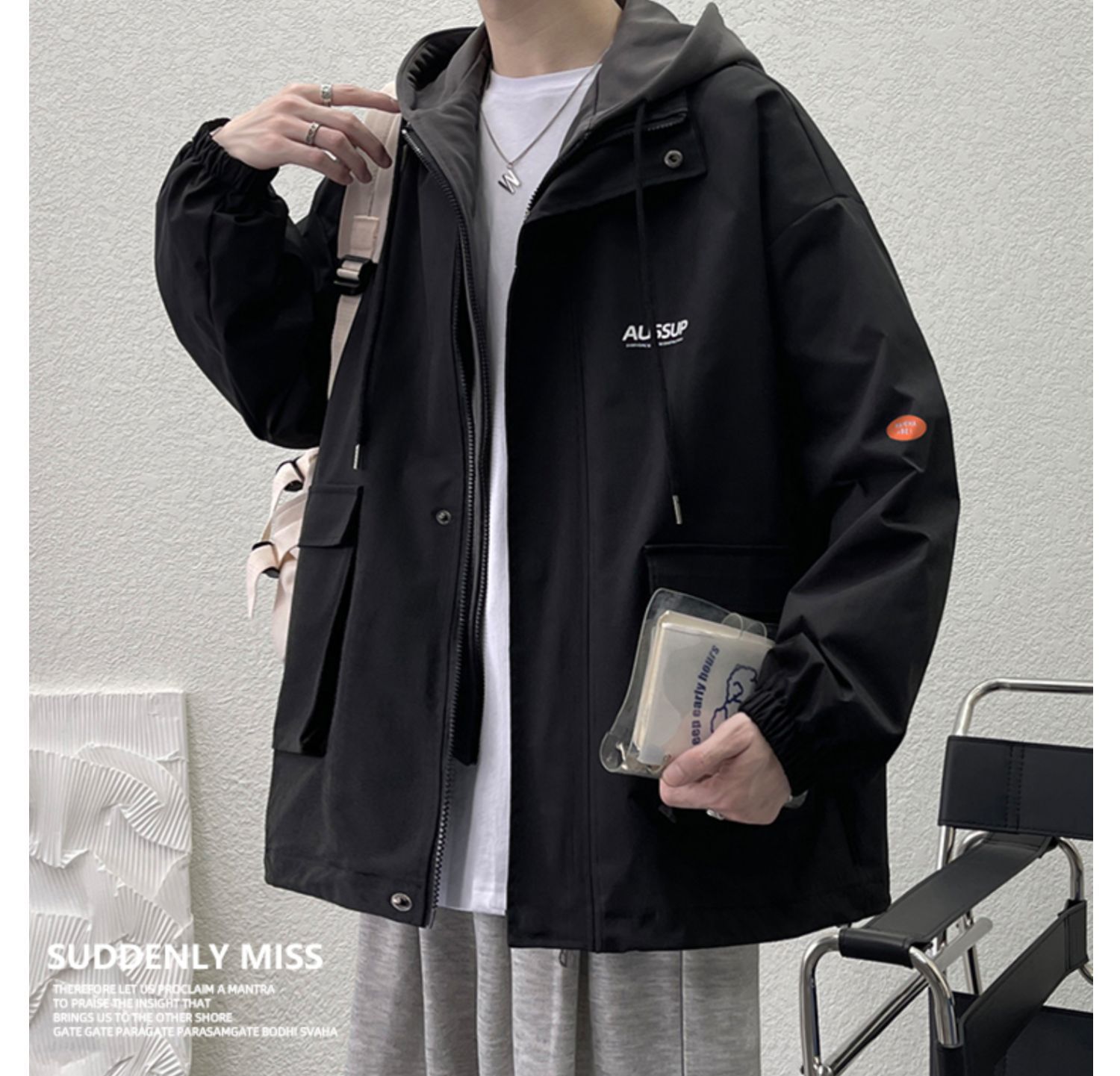 NASA假两件休闲外套男士春秋季2025新款大码学生工装夹克宽松潮牌
