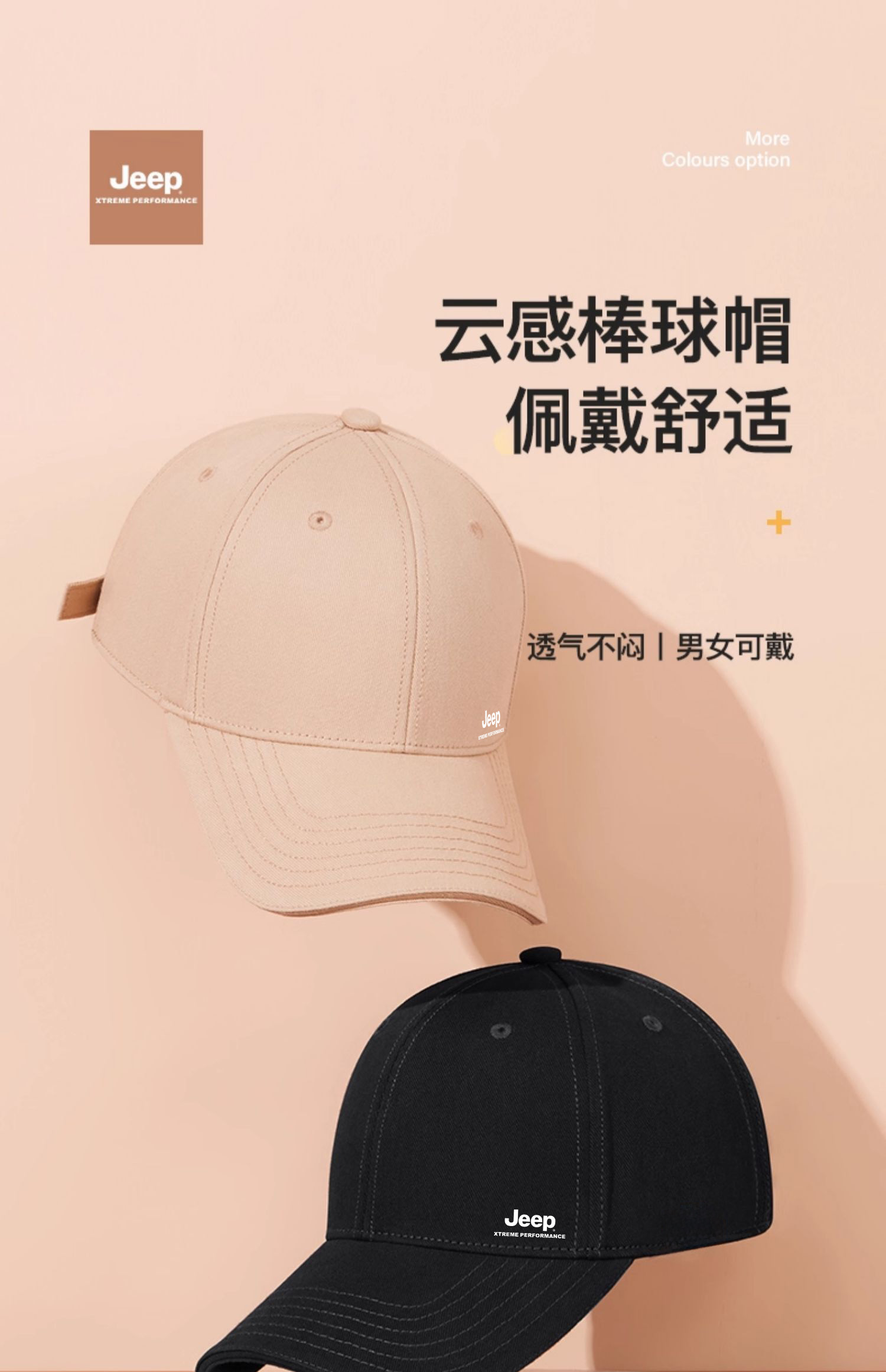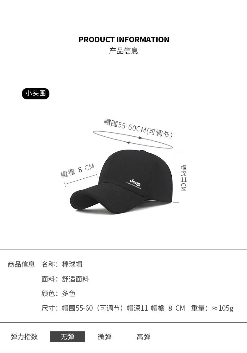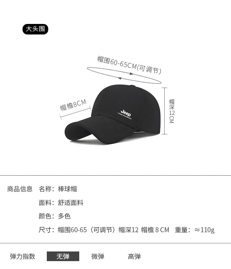 JEEP户外运动遮阳透气百搭防晒时尚鸭舌帽男女休闲立体棒球帽XB304