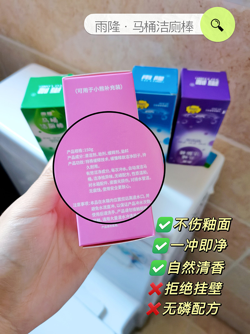 【品名】雨隆·马桶洁厕棒 【规格】150g*9盒 【发货地】河北石家庄 【包装方式】盒装 【存储】密封置于凉暗处保存,避免日光直射与高温环境 【使用方法】拆封后置于马桶水箱即可,一支可冲约300次 【保质期】3年 【发货快递】韵达、圆通、邮政、极兔随机 【发货时效】下单后48小时发货 【注意事项】此为团购多盒优惠活动,部分纸盒包装难免运输会有所挤压破损,但不影响里面产品使用的不可作为售后申请原由。 |