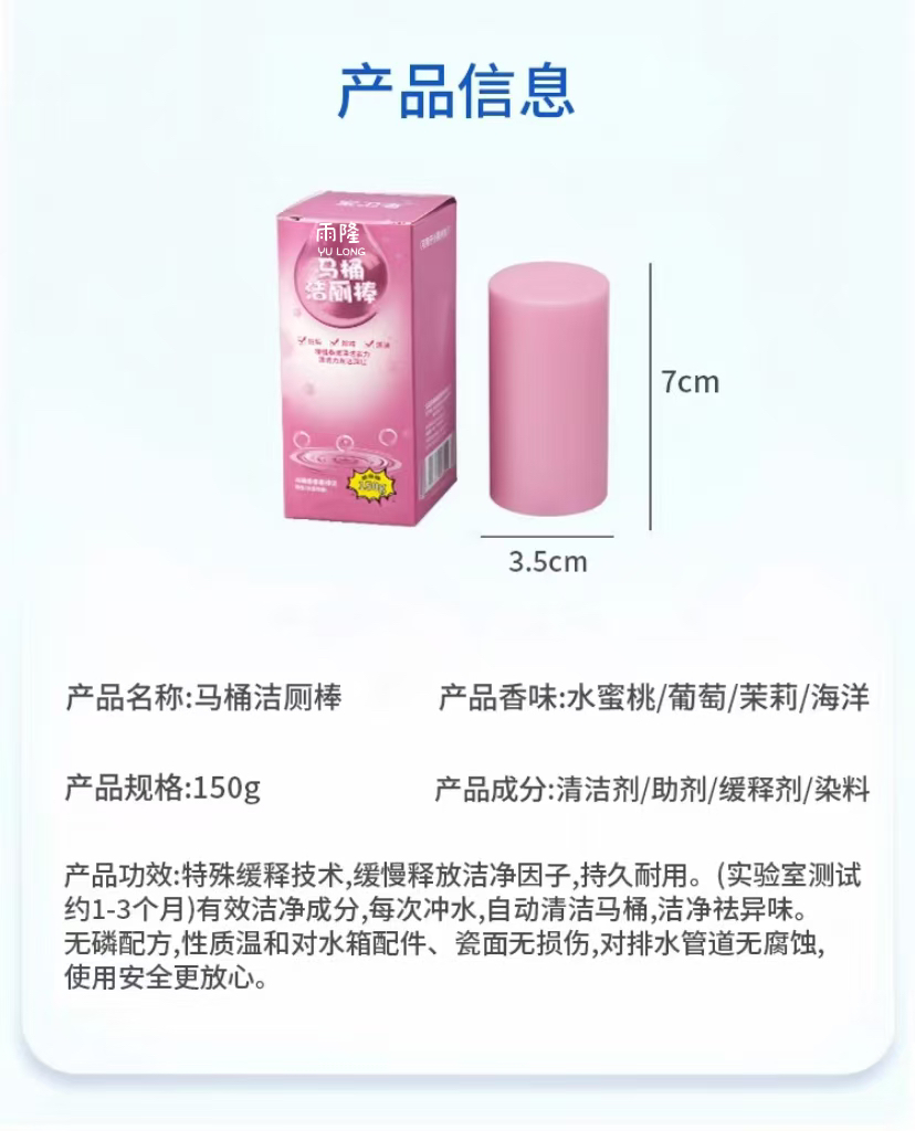 热卖拍1发9盒【自动洁厕!雨隆马桶洁厕棒】拯救马桶泛黄发臭 除垢除臭+去渍留香 天然植物香氛 有效清除异味,持久留香,一支可冲300次