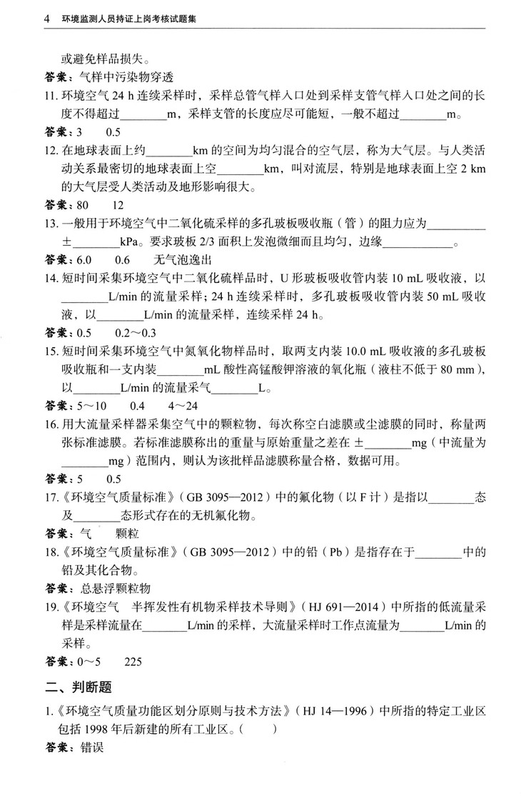 《环境监测人员持证上岗考核试题集》自出版以来,在全国环境监测人员的学习、培训和人员能力考核等工作中发挥了重要作用,特别是在环境监测社会化发展时期,将应用范围从环境监测系统扩展到愿意为环境监测提供服务的所有人员和监测/检测机构,深化了编者规范、提高环境监测技术和质量管理水平的初心。