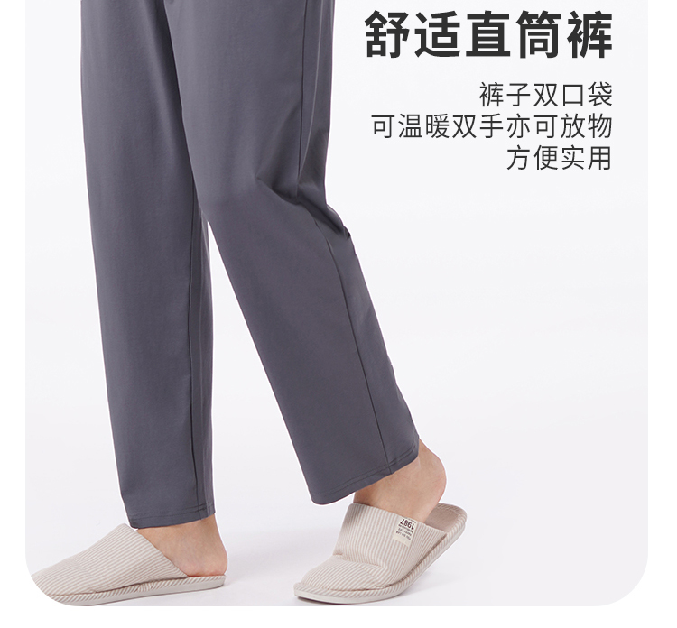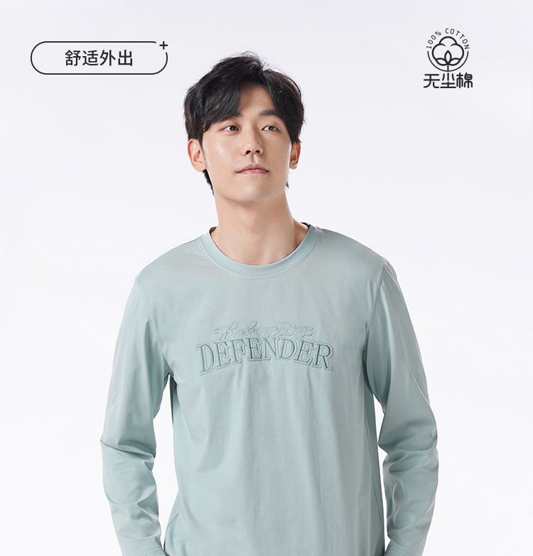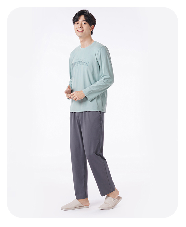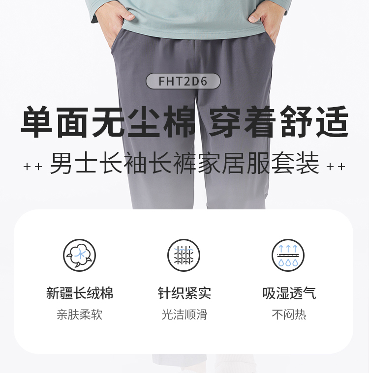 都市丽人都市锋尚睡衣舒适外出长袖单面无尘棉薄男士棉质长袖套装FHT2D6