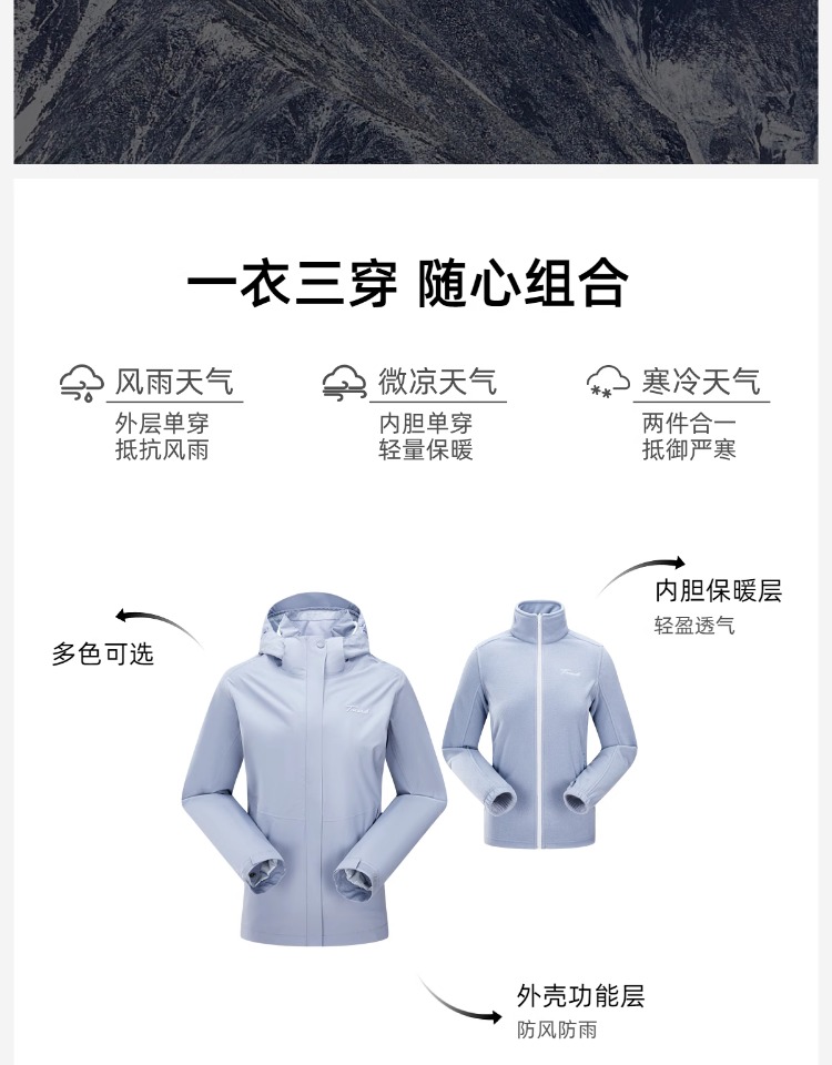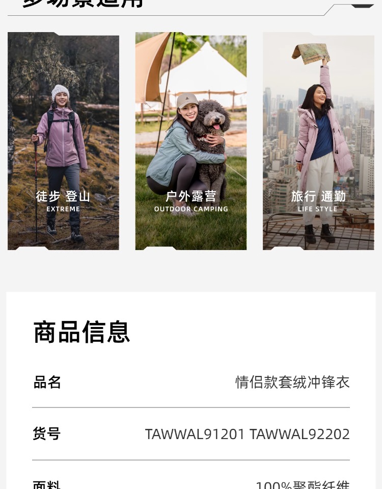 探路者女式套绒冲锋衣TAWWAL92202