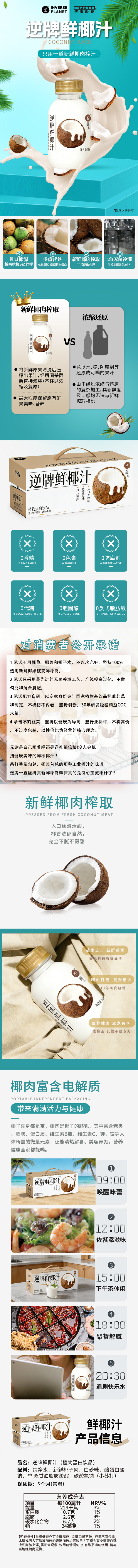 【鲜椰汁】100%甄选新鲜椰肉物理榨取 2小时无菌冷灌工艺 锁鲜营养 0香精、0色素、0防腐剂、0反式脂肪酸、0代糖。