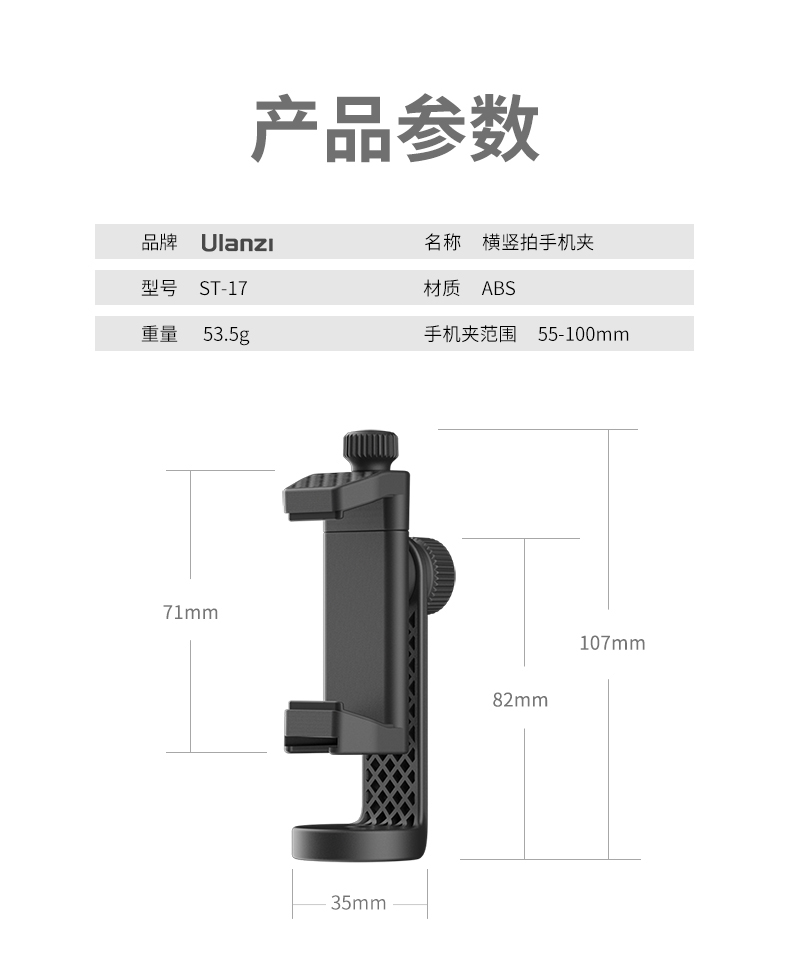 Ulanzi ST-17横竖拍冷靴手机夹桌面Vlog拍照摄影视频直播通用拓展三脚架补光灯懒人便携自拍支架
