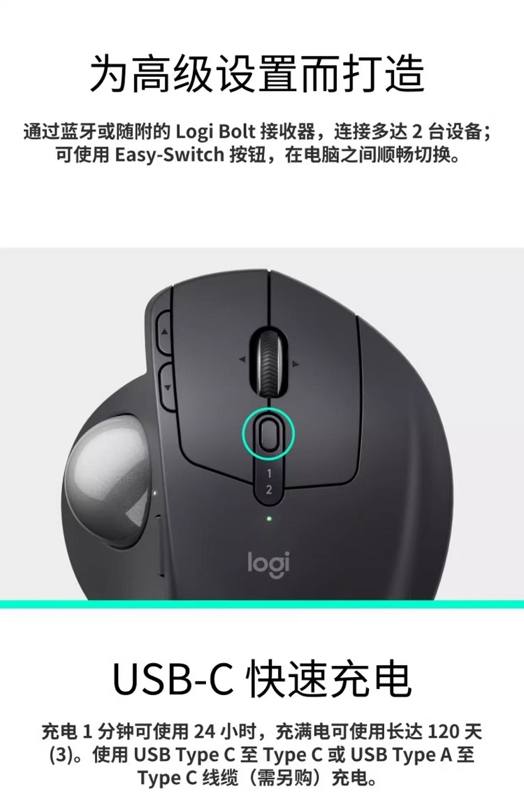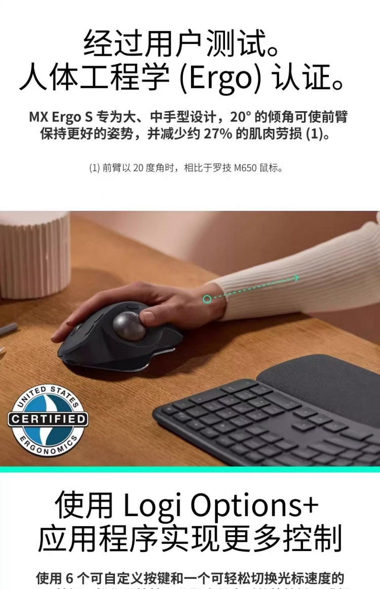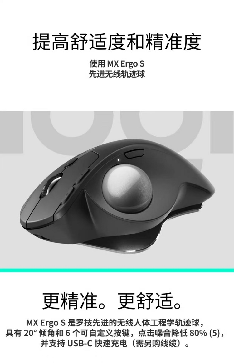 罗技大师系列 MX ERGO S 人体工学无线蓝牙鼠标