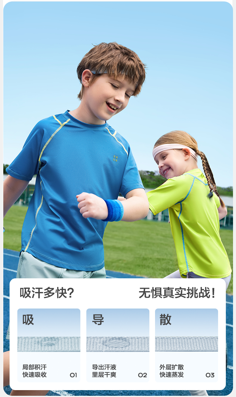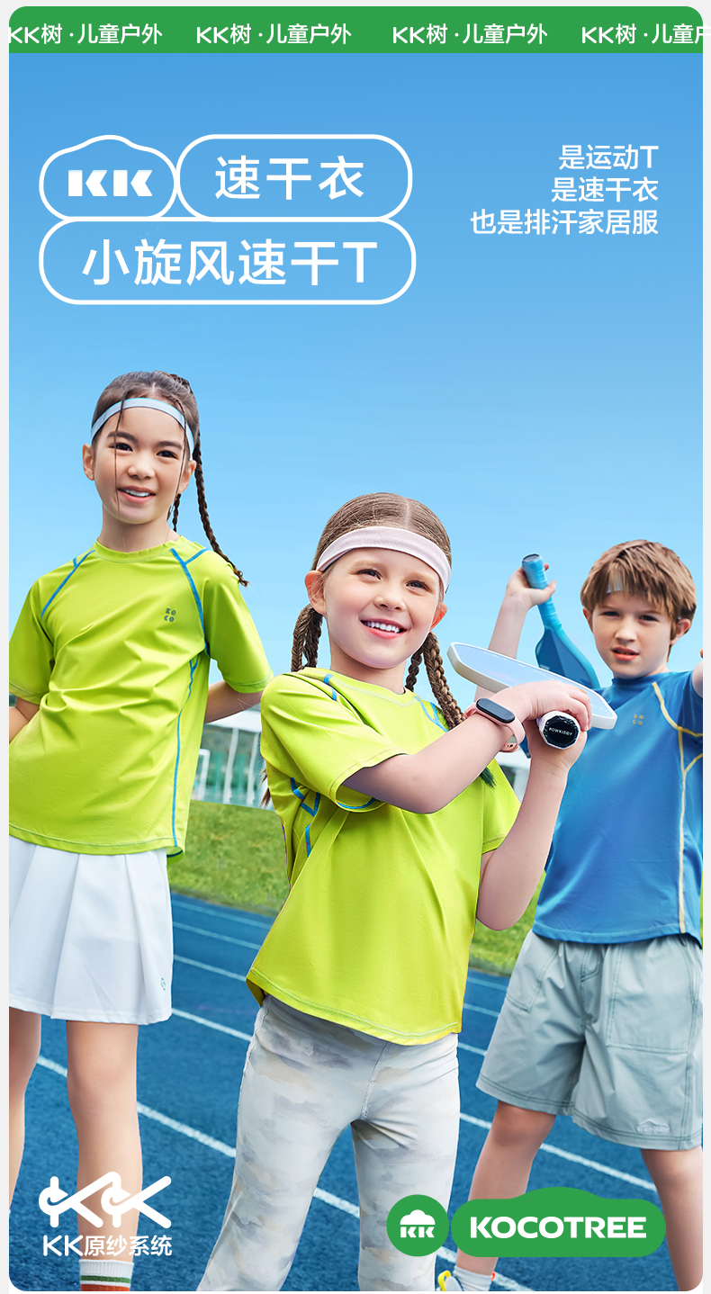 KK树儿童速干衣男女童短袖T恤夏季吸湿薄款透气运动上衣2025新款小旋风速干T