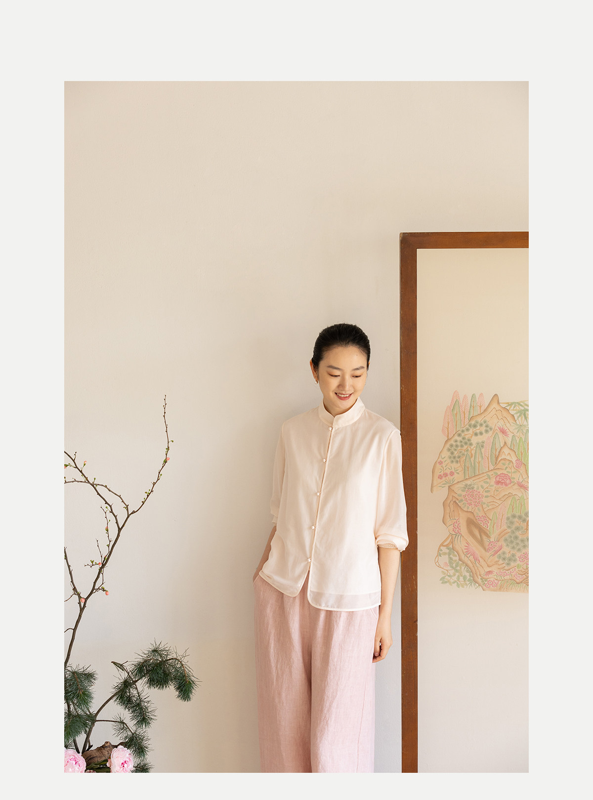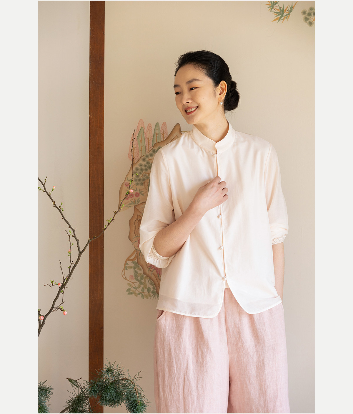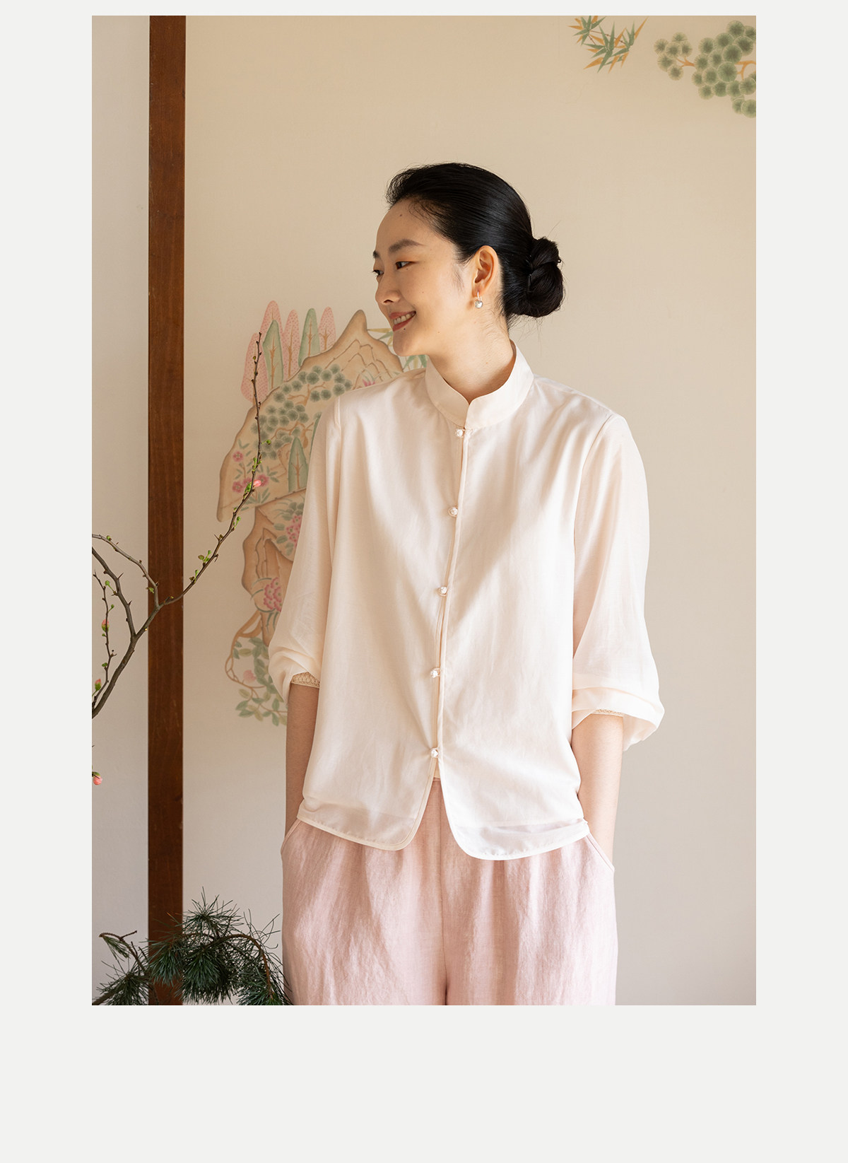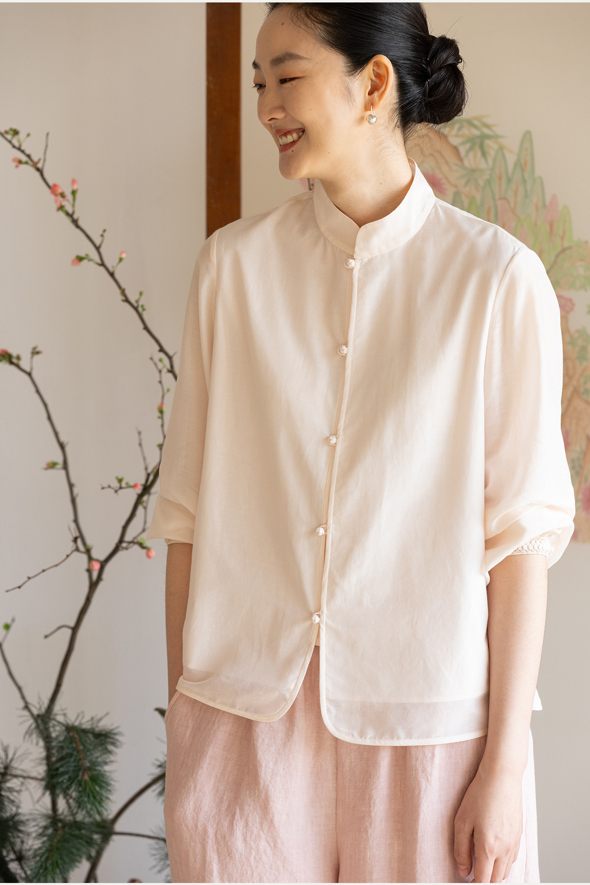 牧衣游原创 丝棉净色衬衫女新款轻薄文艺百搭极简新中式上衣 物空