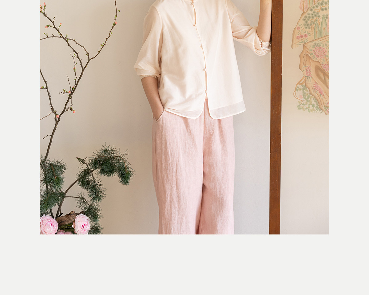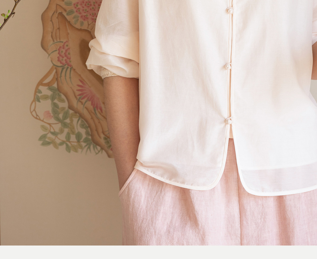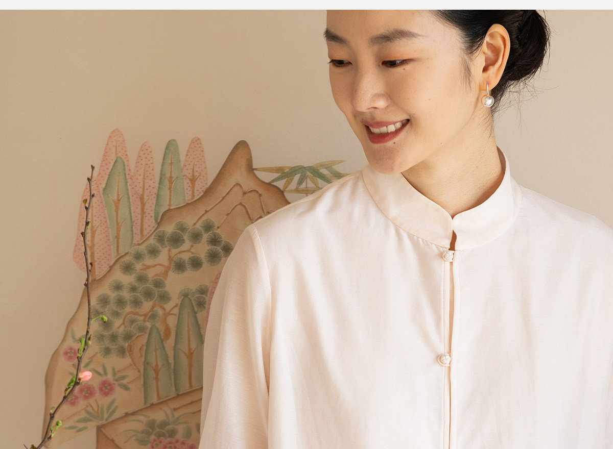 牧衣游原创 丝棉净色衬衫女新款轻薄文艺百搭极简新中式上衣 物空
