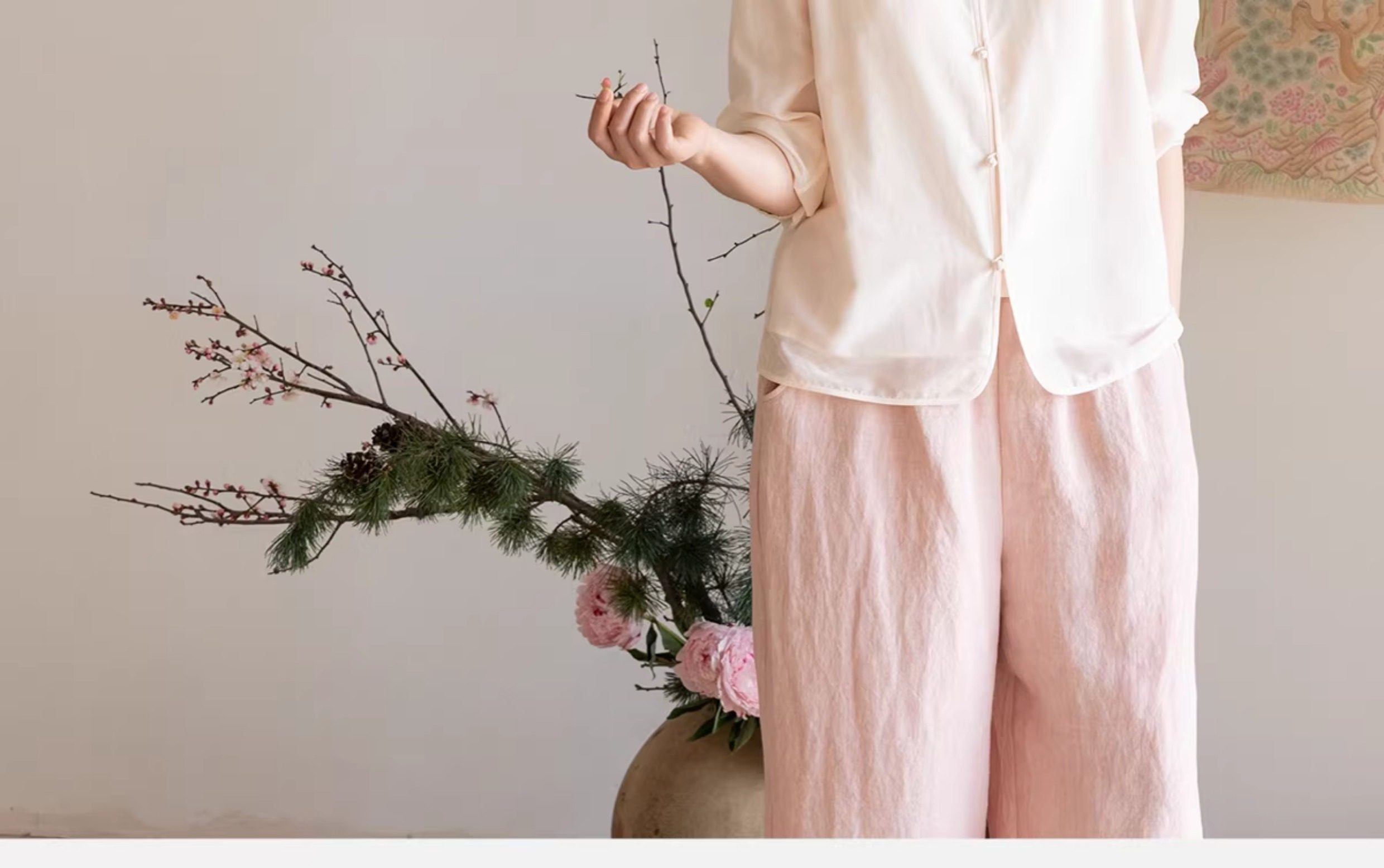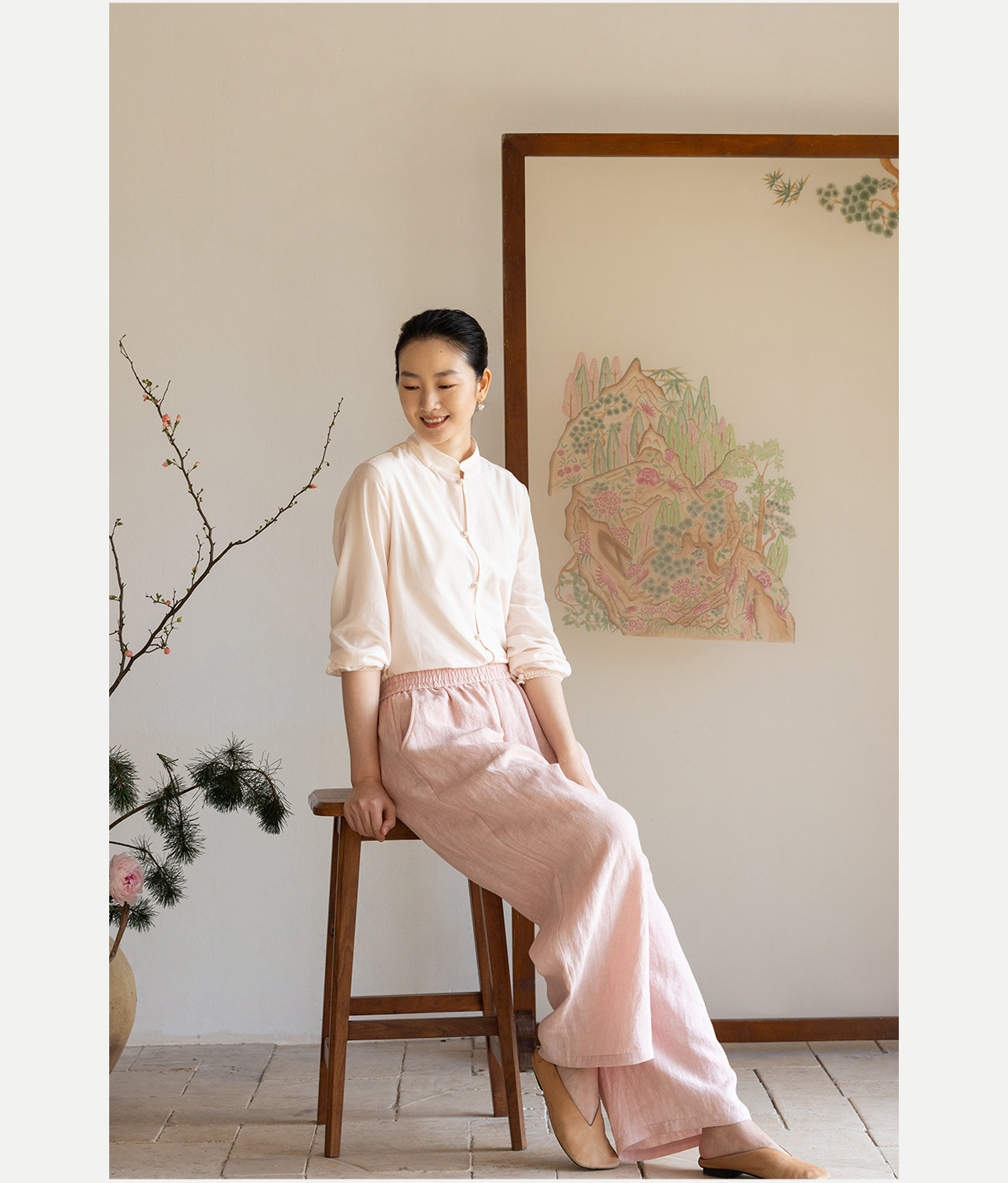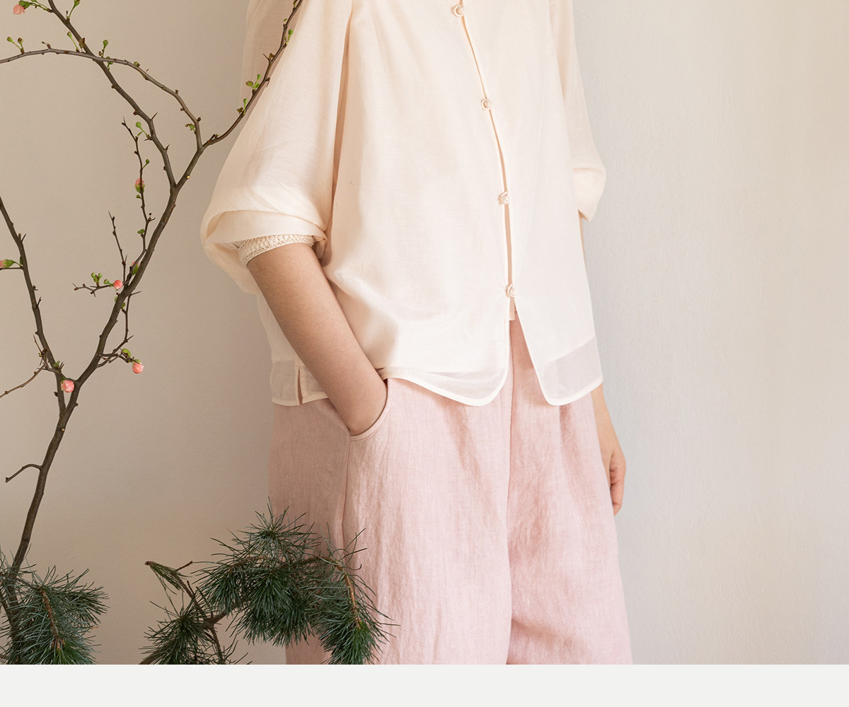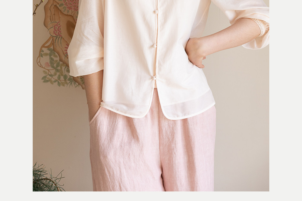 牧衣游原创 丝棉净色衬衫女新款轻薄文艺百搭极简新中式上衣 物空