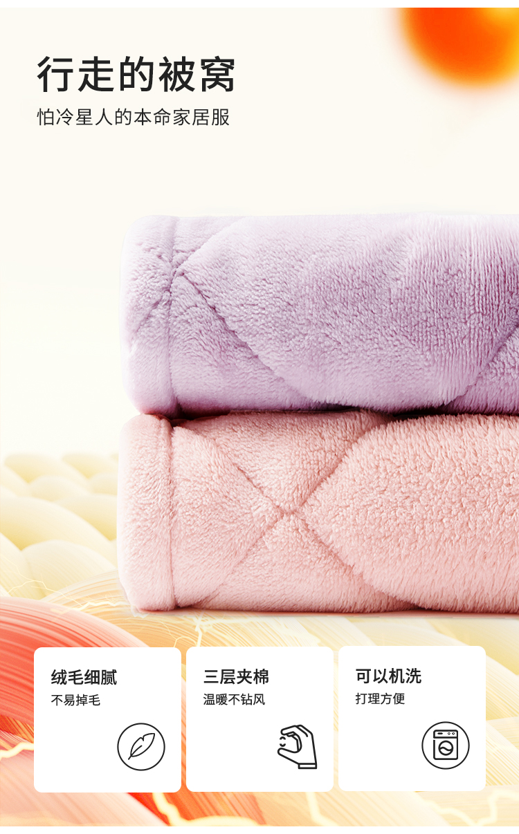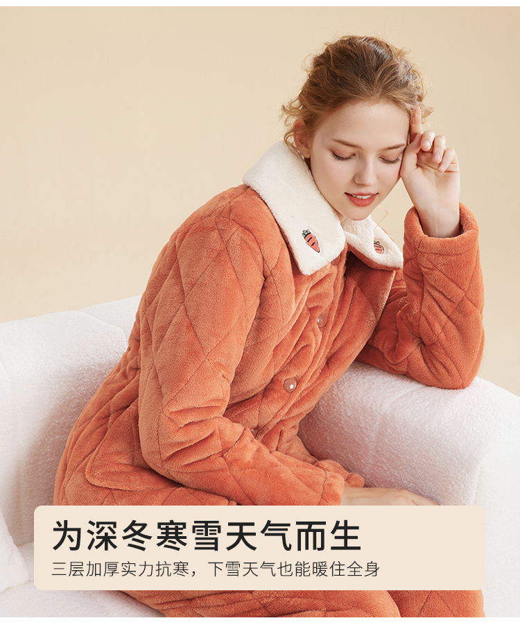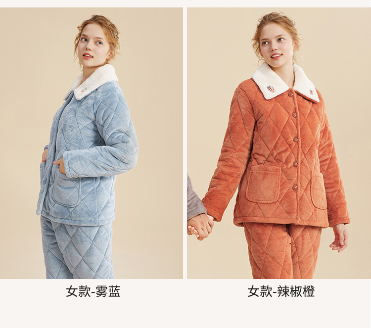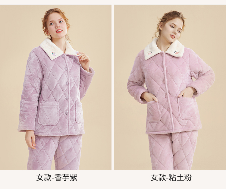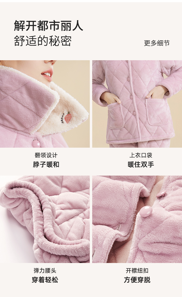 都市丽人秋冬睡衣长袖长裤法兰绒夹棉家居服2H30C6
