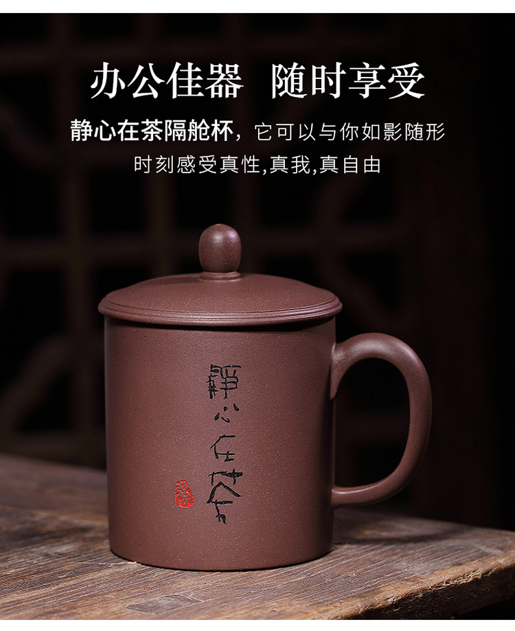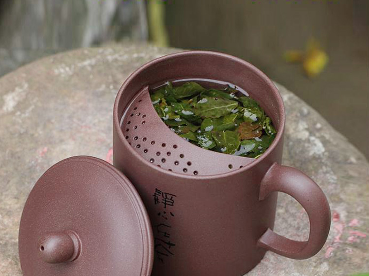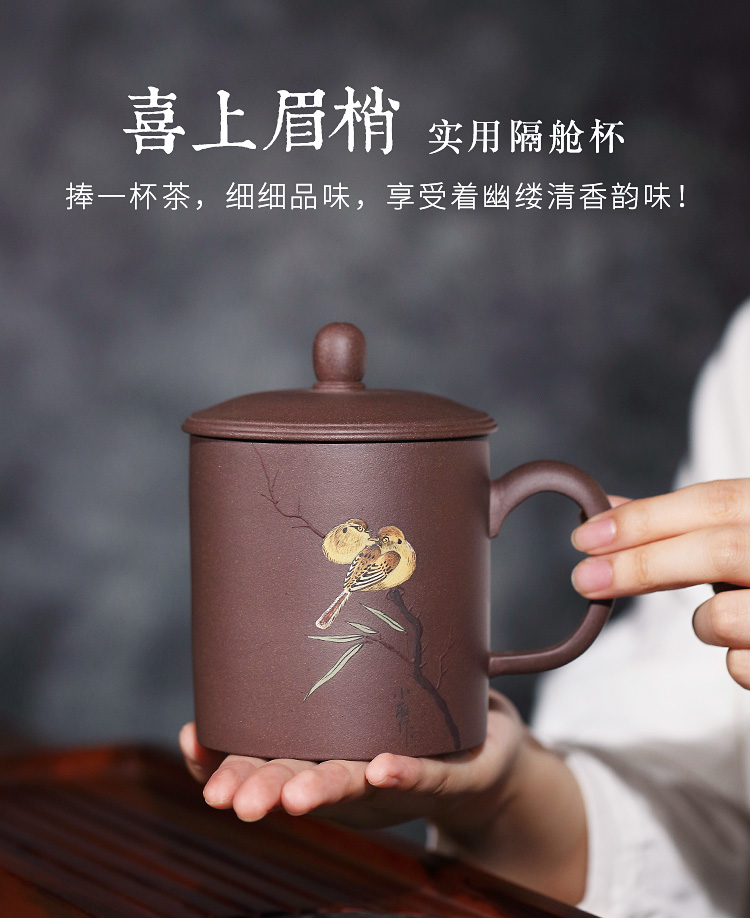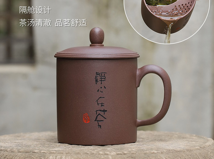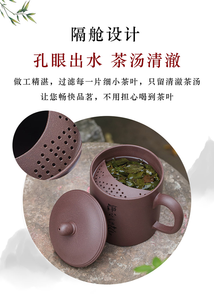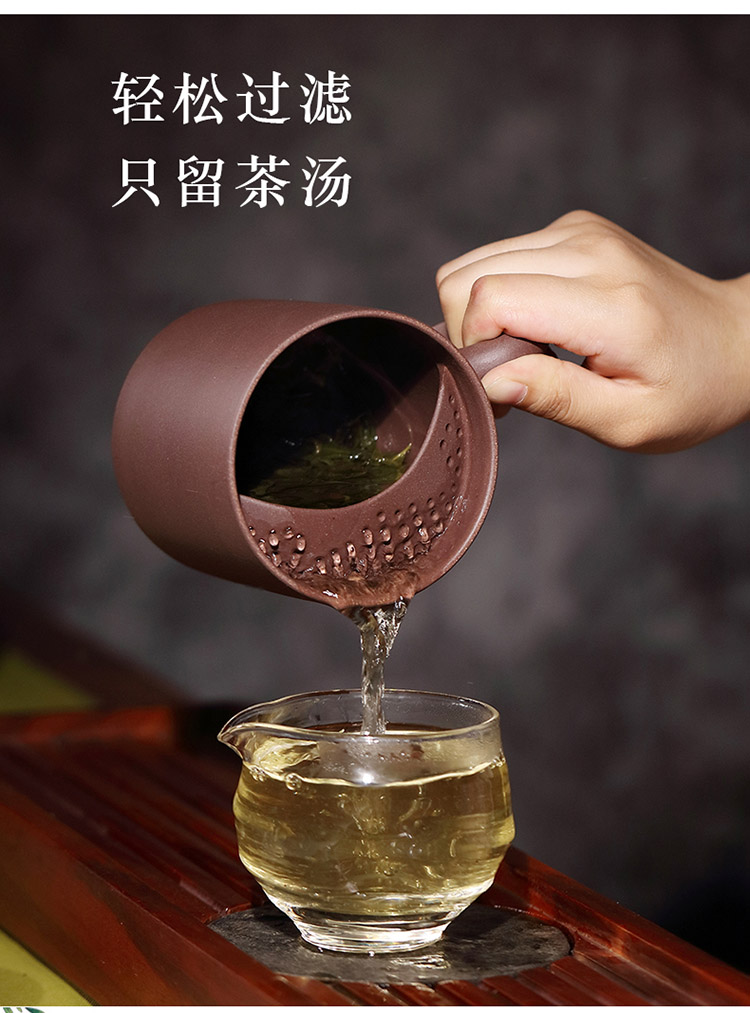 宜兴智慧紫砂杯带过滤茶隔大容量紫泥杯480ml