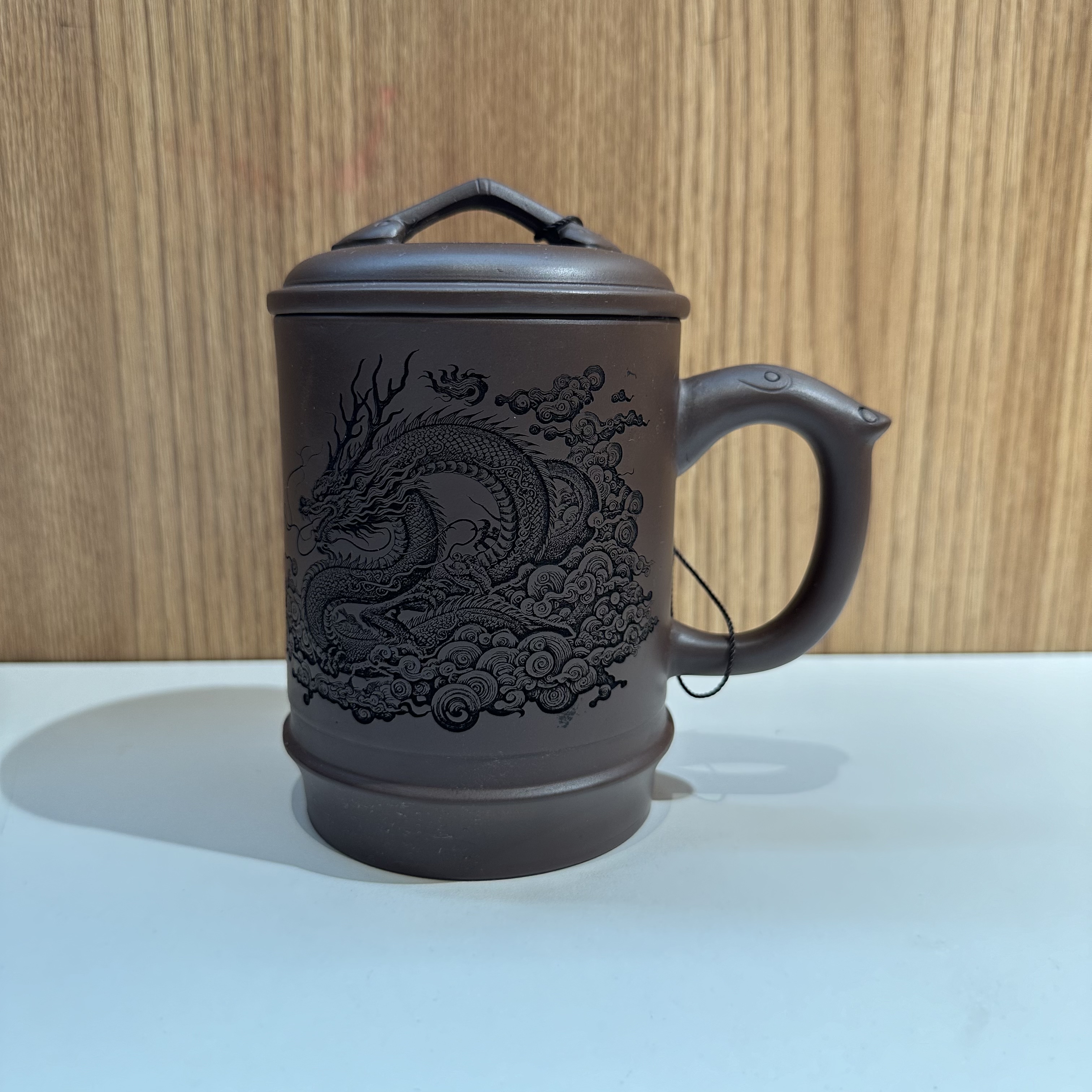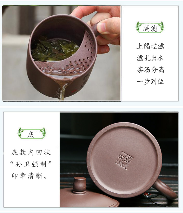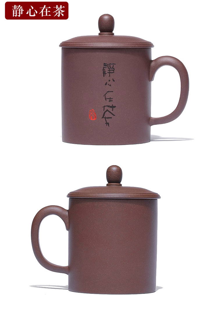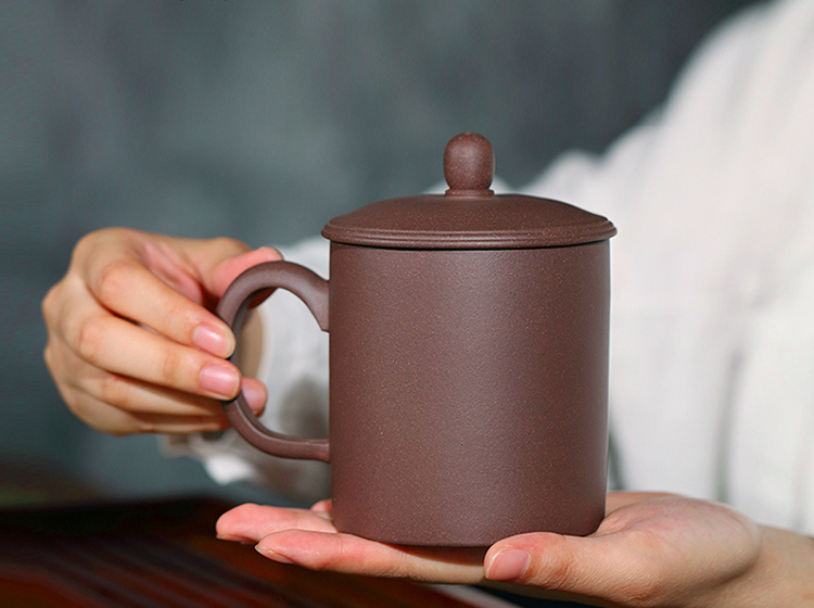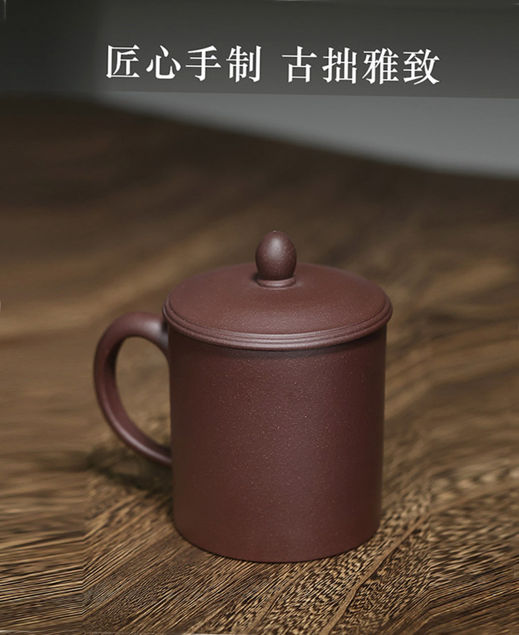 宜兴智慧紫砂杯带过滤茶隔大容量紫泥杯480ml