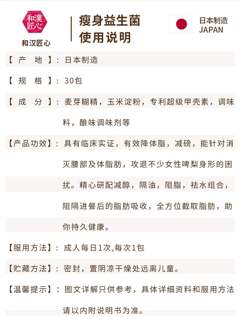 和汉匠心Craft by Wakan日本减肥益生菌(腰臀瘦配方)30粒减脂瘦身