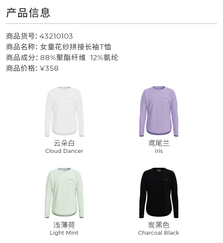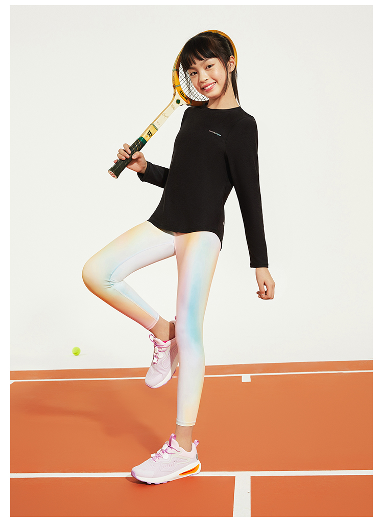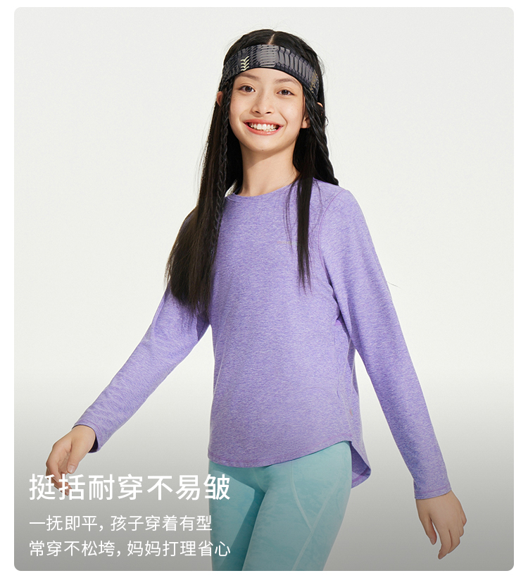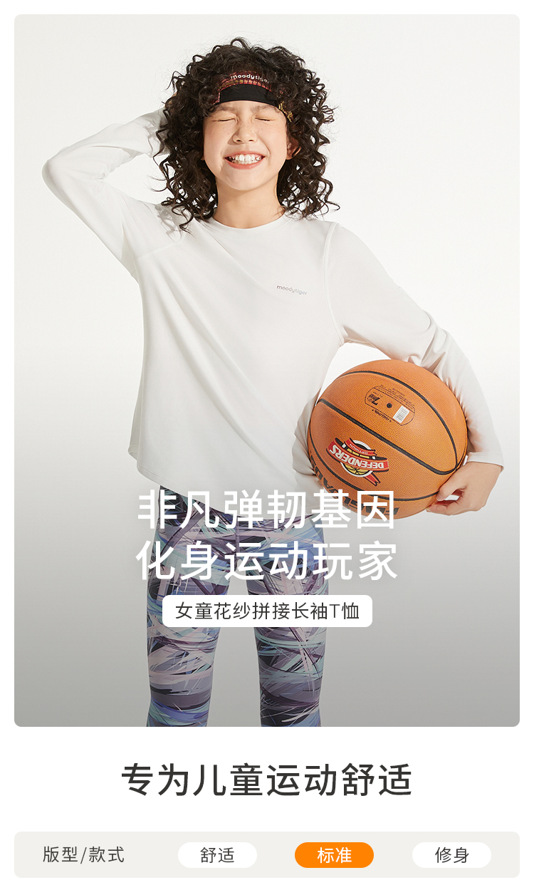 【24年秋新】【网球系列】moodytiger24秋新女童长袖T恤弹力拼接透气运动长袖43210103