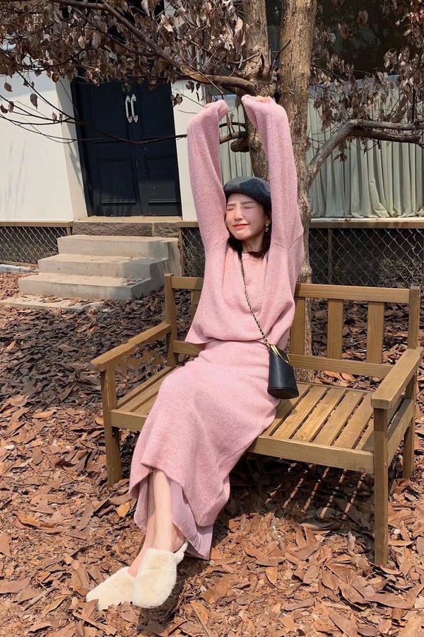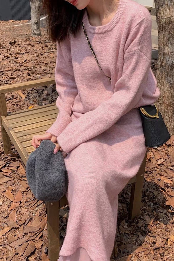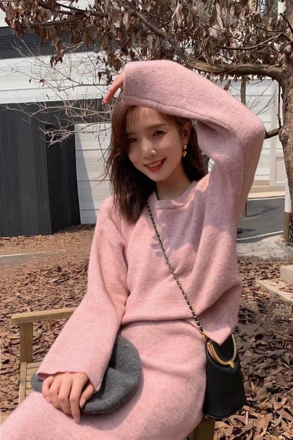 amadella 温柔甜美系粉色圆领针织上衣 17514