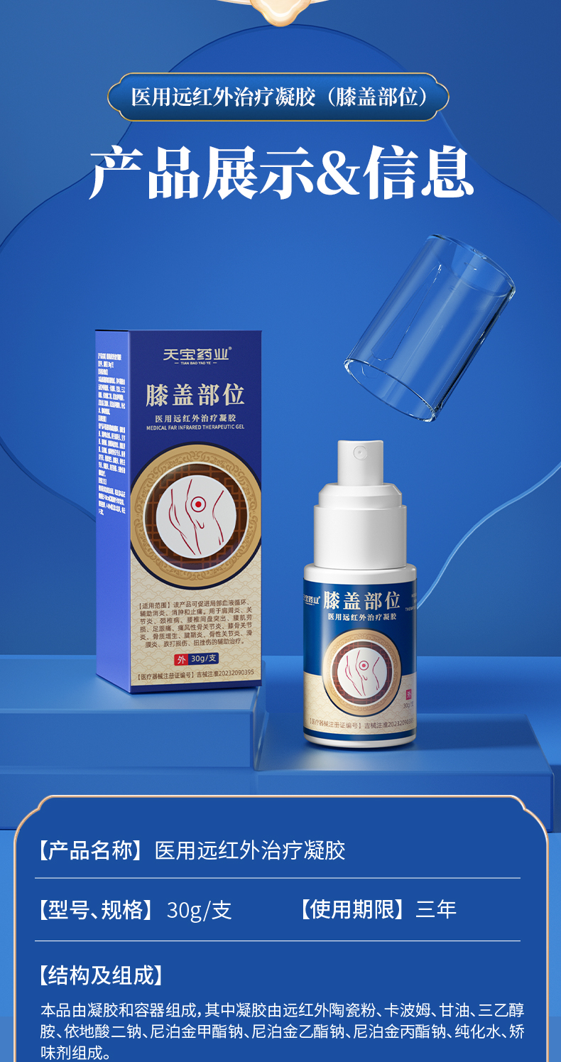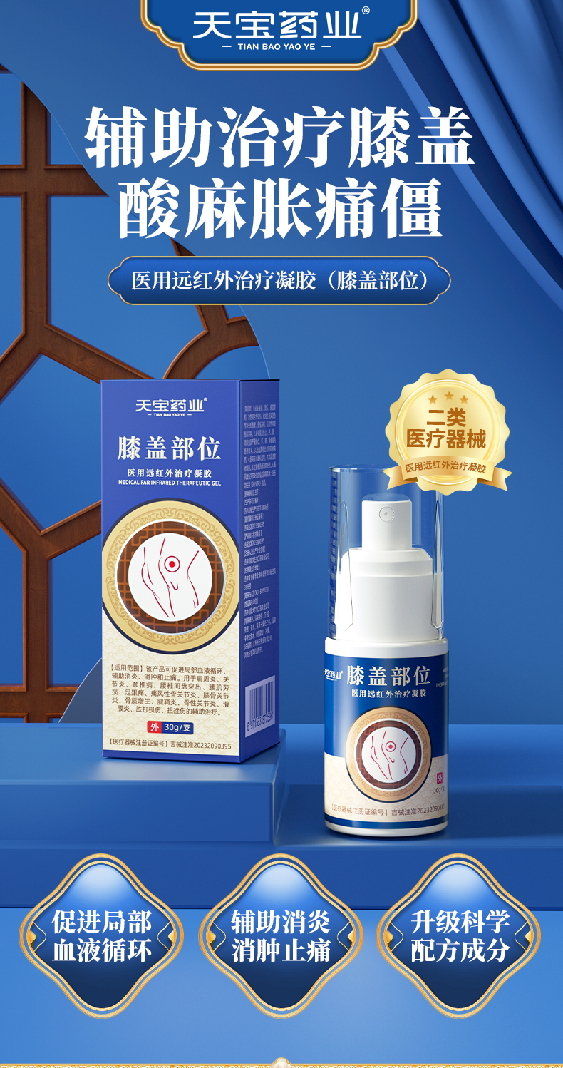 天宝药业膝盖部位医用远红外治疗凝胶促进血液循环消肿止痛喷雾剂