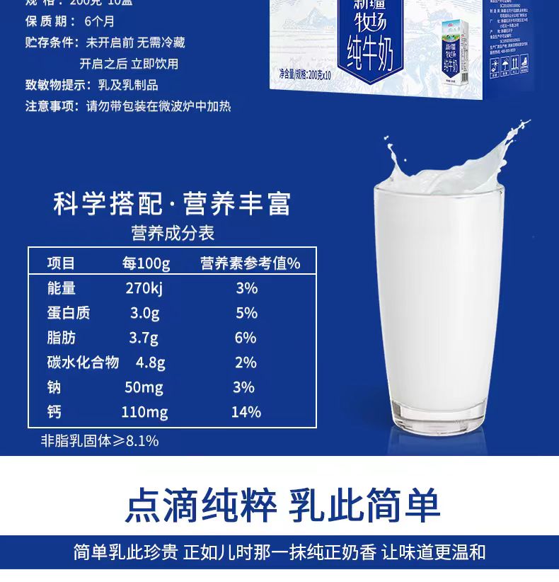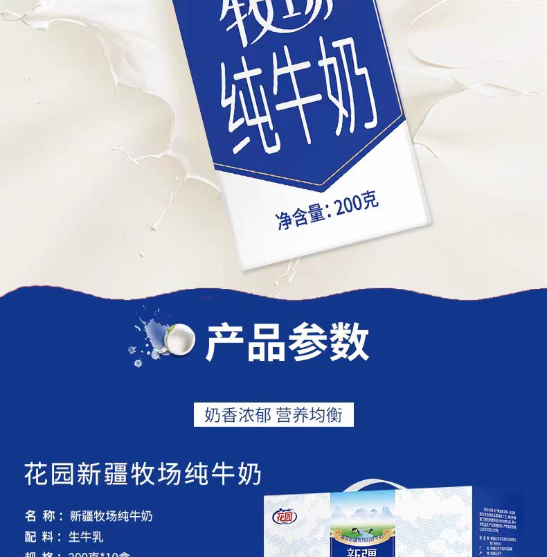 花园新疆牧场纯牛奶200g*10盒