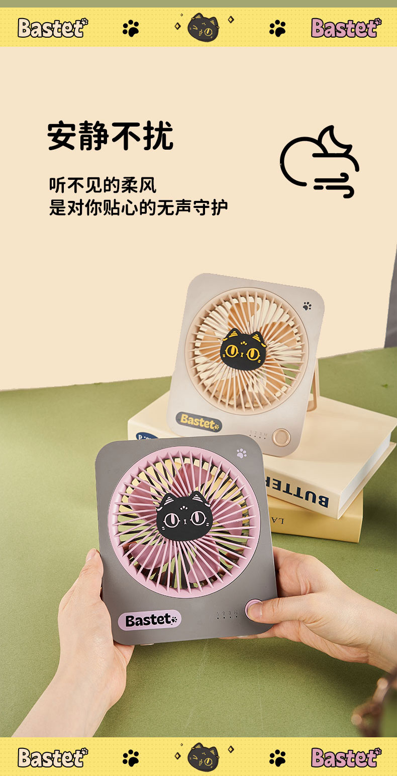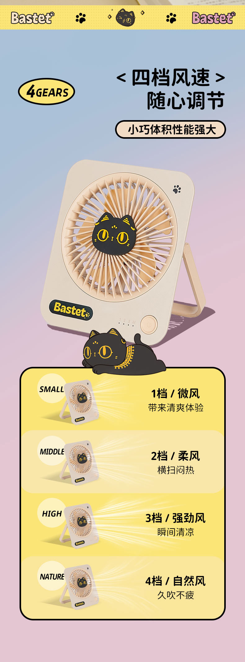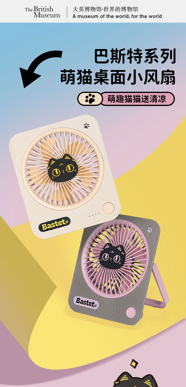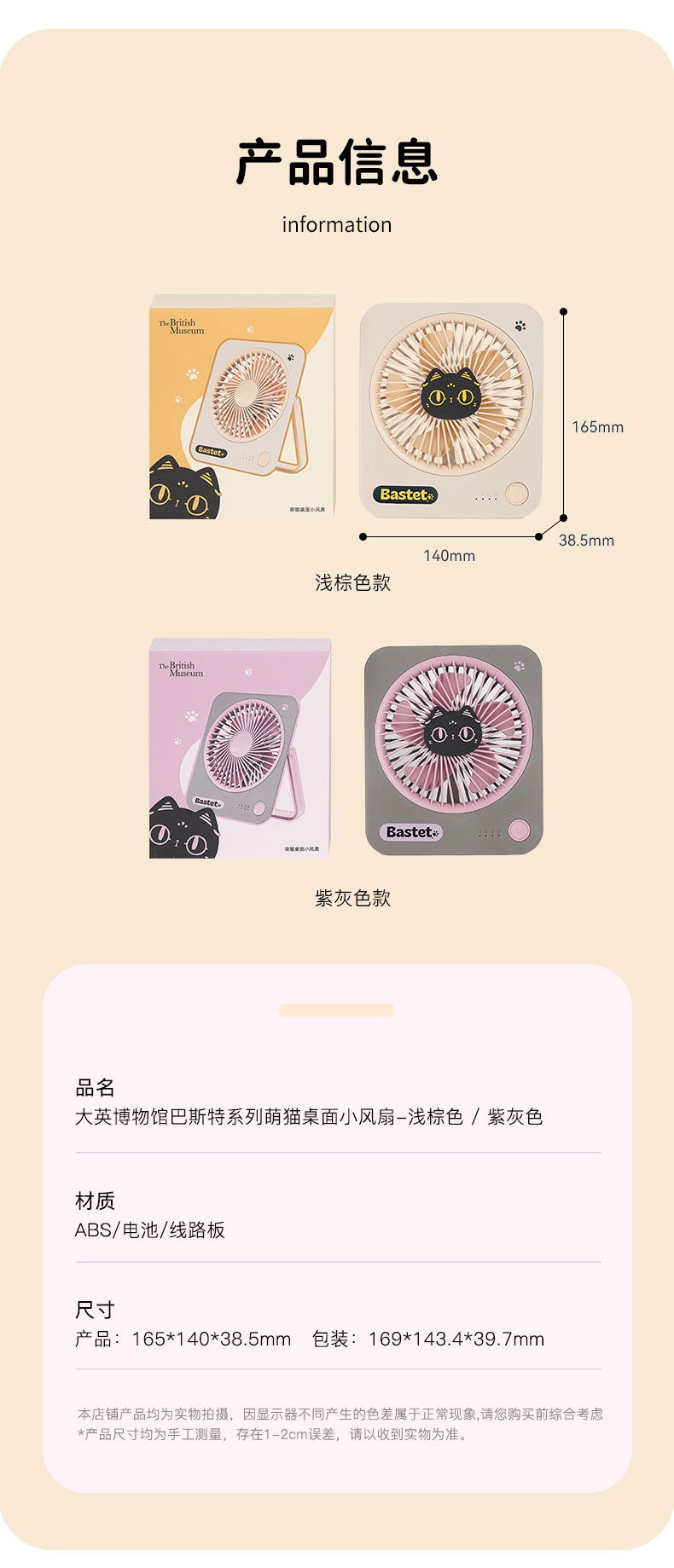 大英博物馆 巴斯特系列 萌猫桌面小风扇 浅棕色 紫灰色