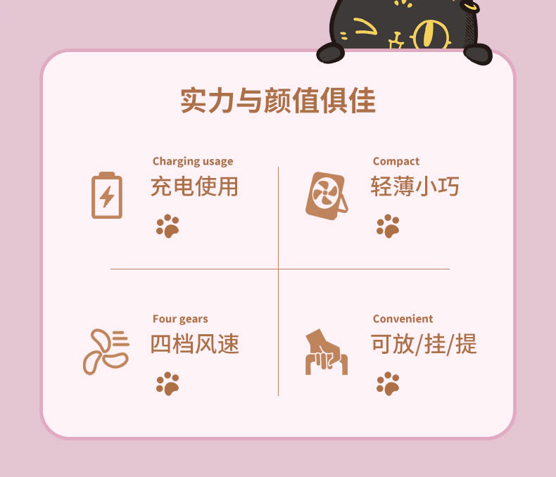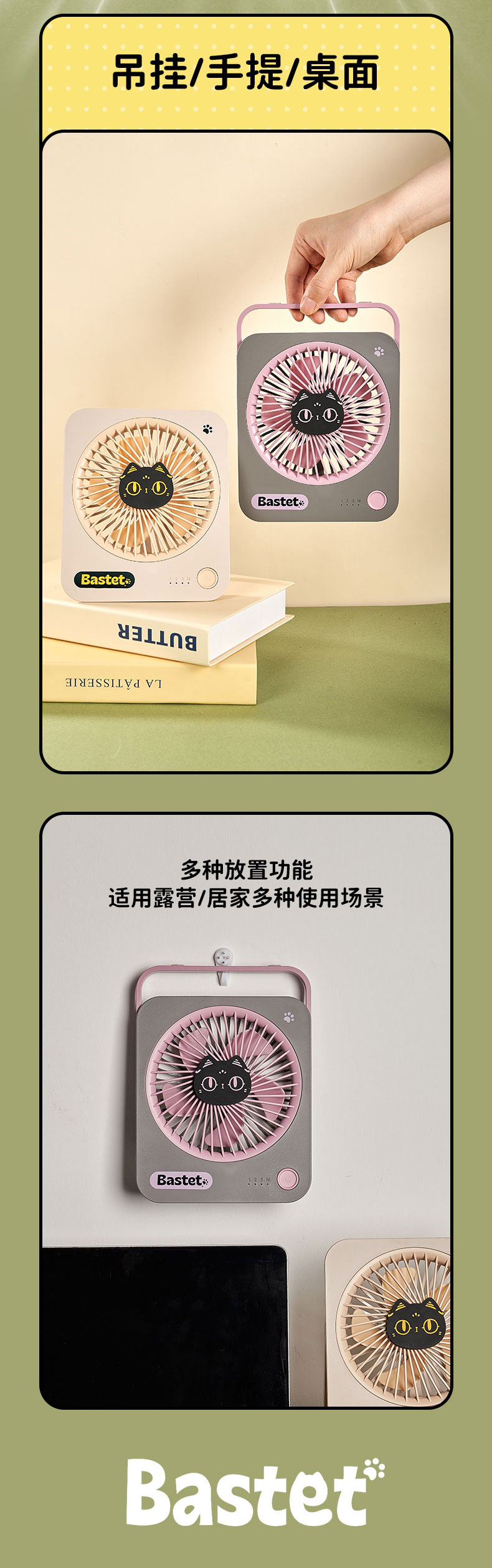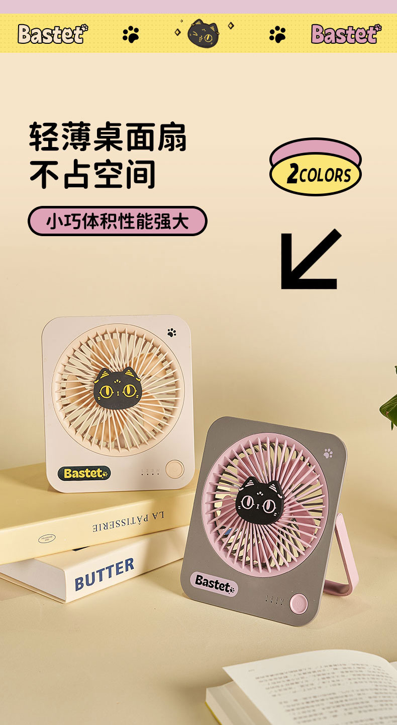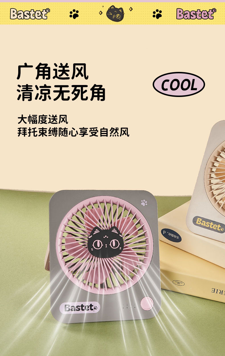 大英博物馆 巴斯特系列 萌猫桌面小风扇 浅棕色 紫灰色
