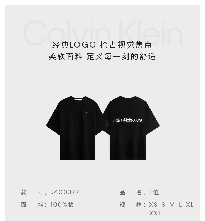 CK 短袖T恤男 J400377-BEH .