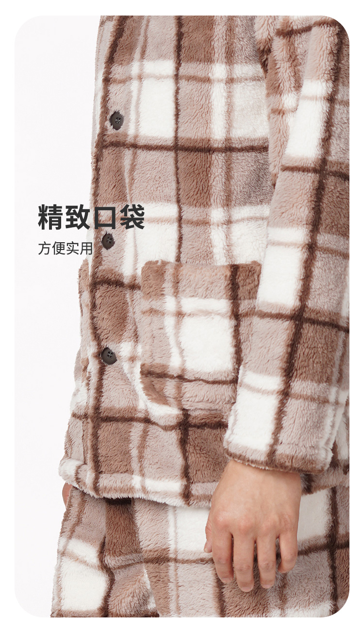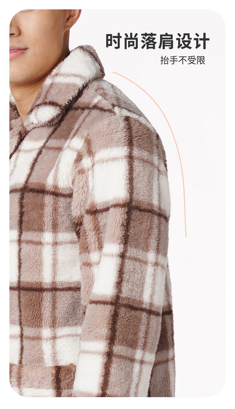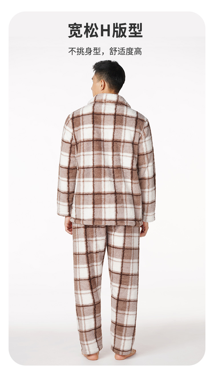 都市丽人都市锋尚生活家居男士长毛绒套装北极绒印格厚家居服长袖睡衣FH21H3