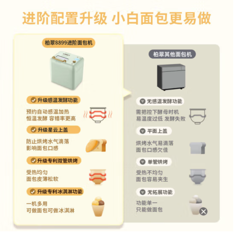 柏翠(petrus)面包机烤面包机和面机全自动揉面家用冰淇淋PE8899 淘气