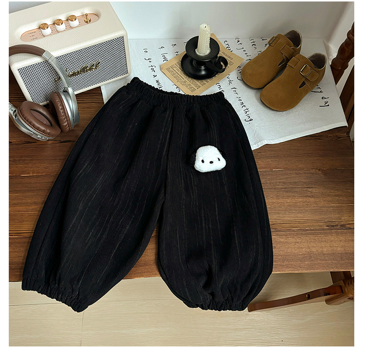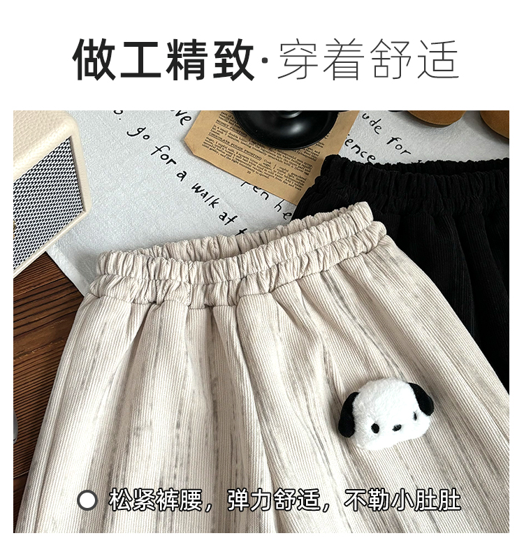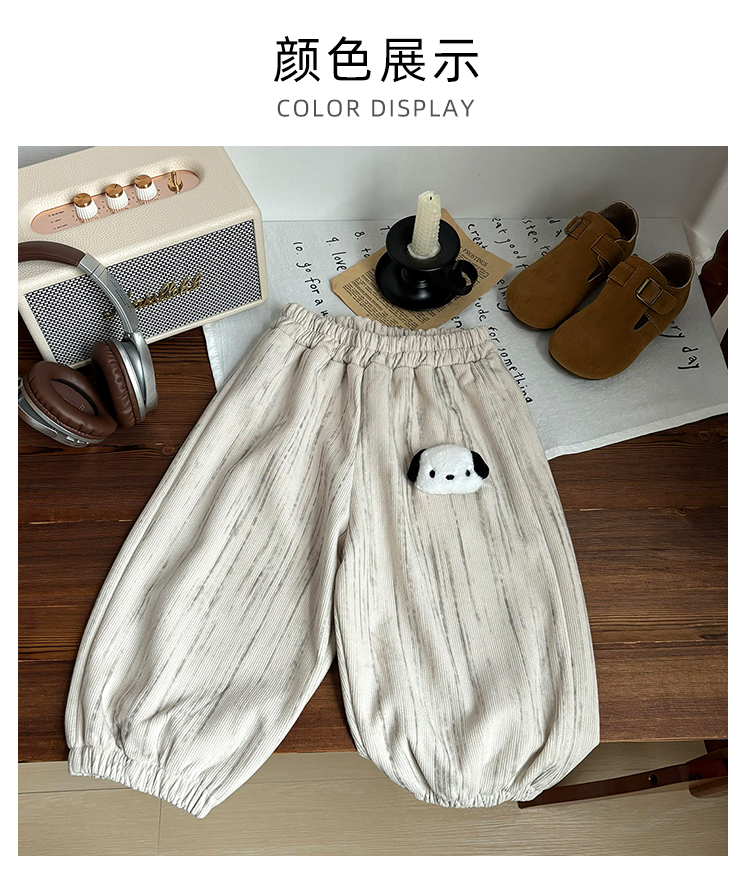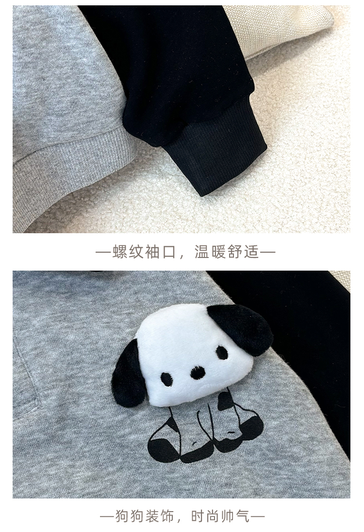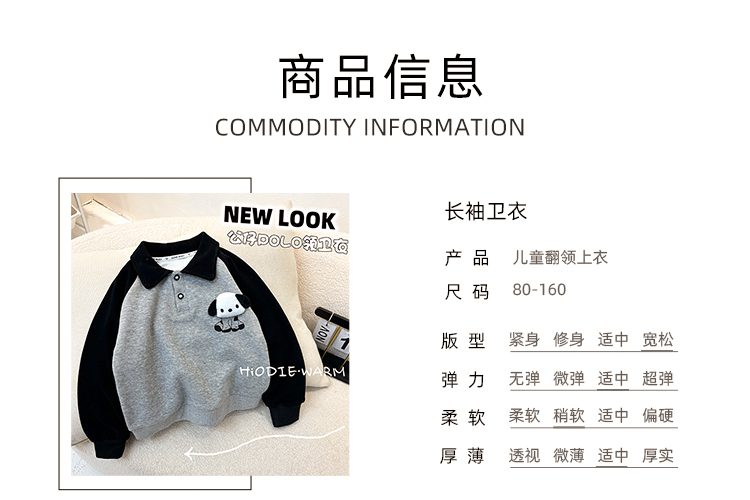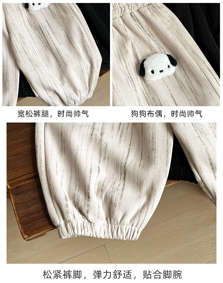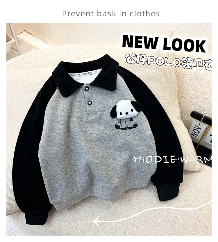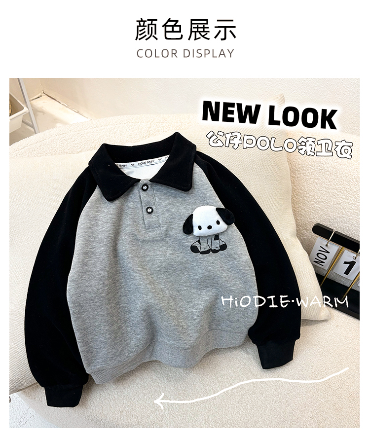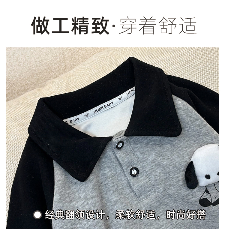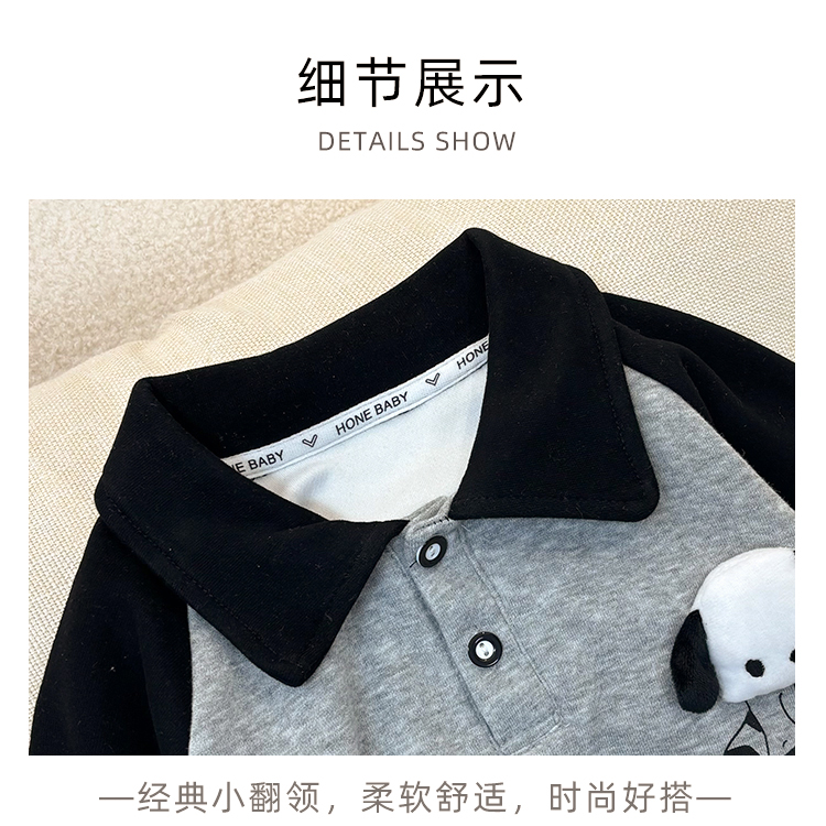 儿童秋季长袖POLO衫棉质插肩拼色公仔小狗卫衣+立体公仔男女童束口卫裤灯芯绒裤子聚