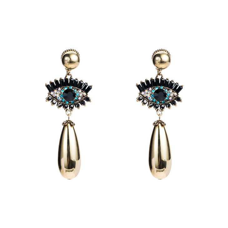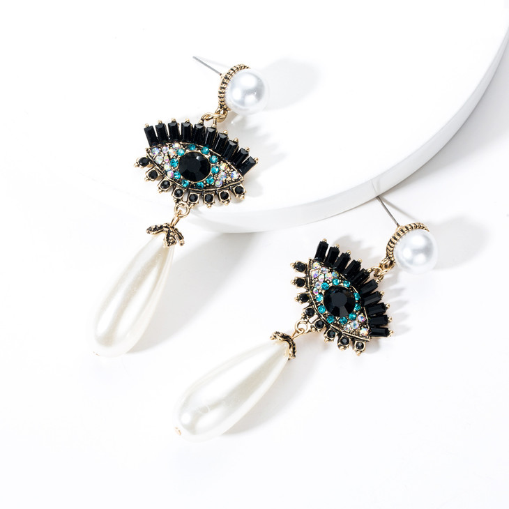 〖复古气质个性耳钉〗欧美夸张亚克力镶钻眼睛珍珠耳坠耳环女复古气质个性耳饰earrings