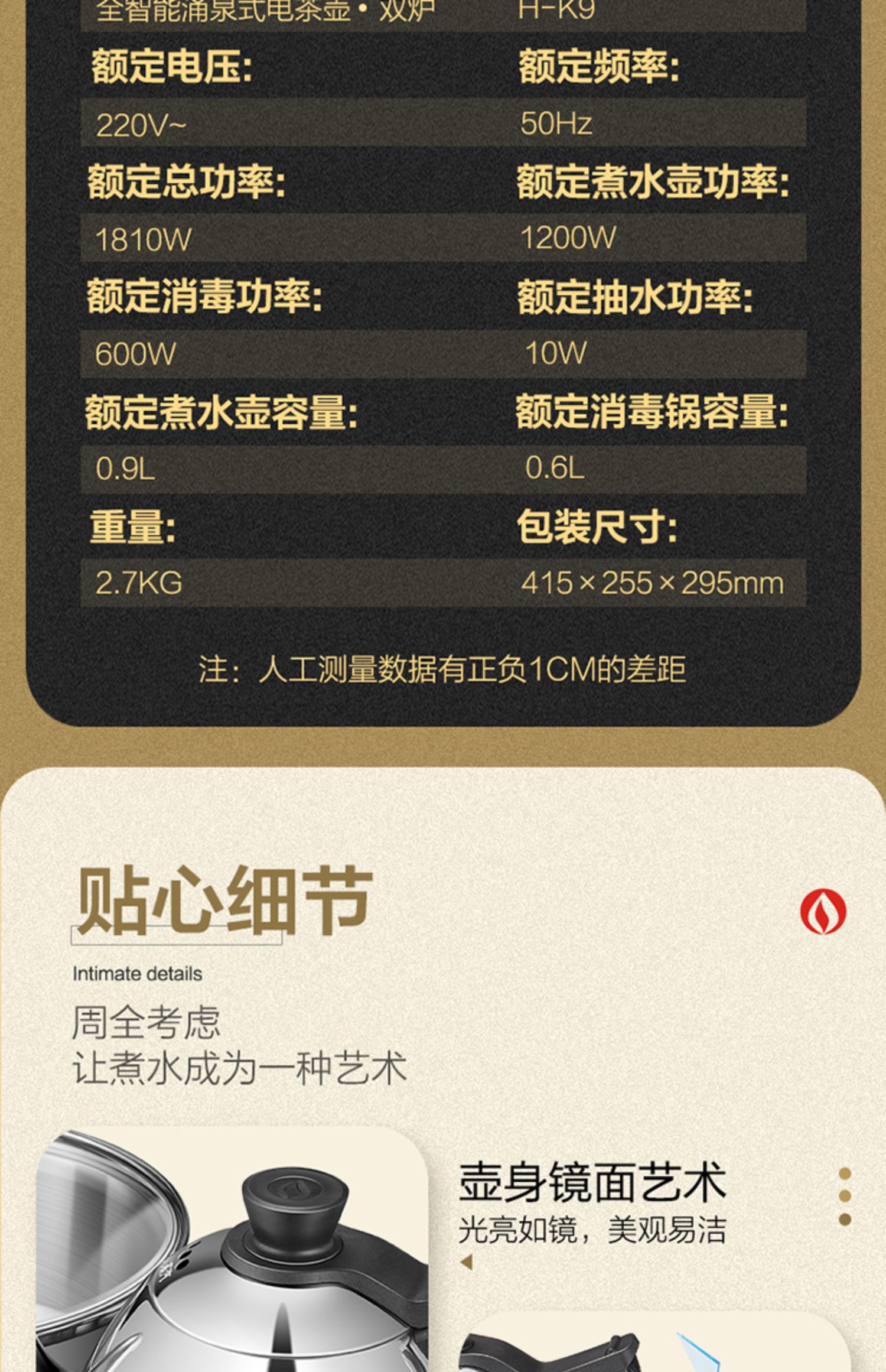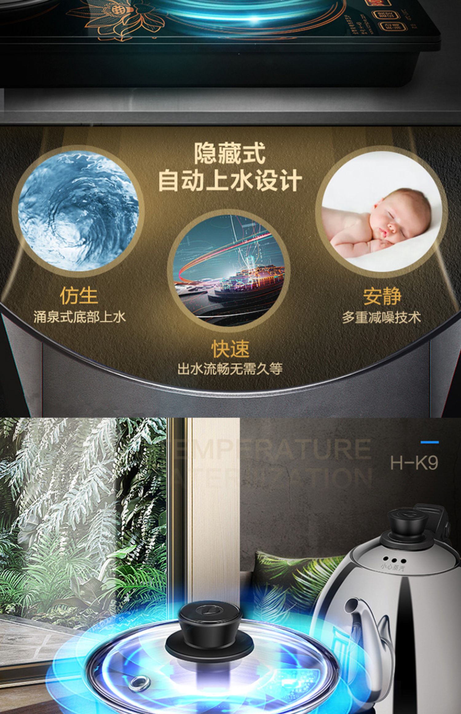 金灶H-K9智能涌泉式全自动底部上水电茶炉热水壶煮水家用