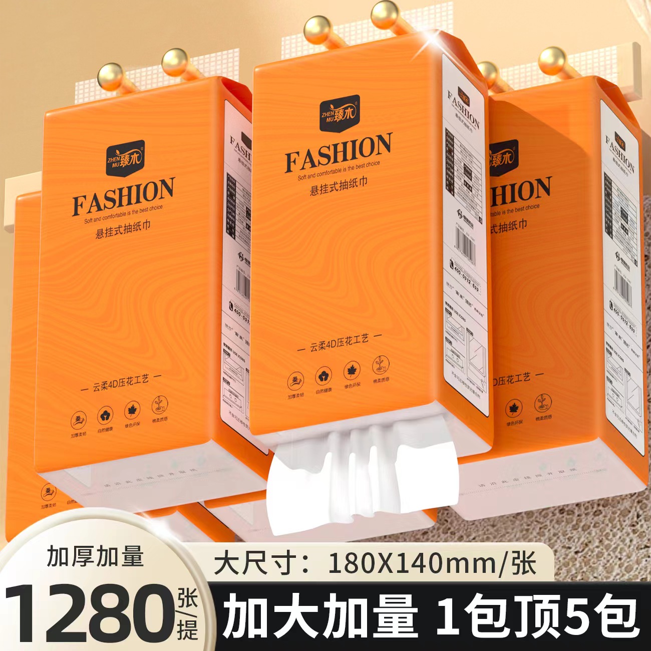臻木悬挂式大包抽纸4提装/每提1280抽