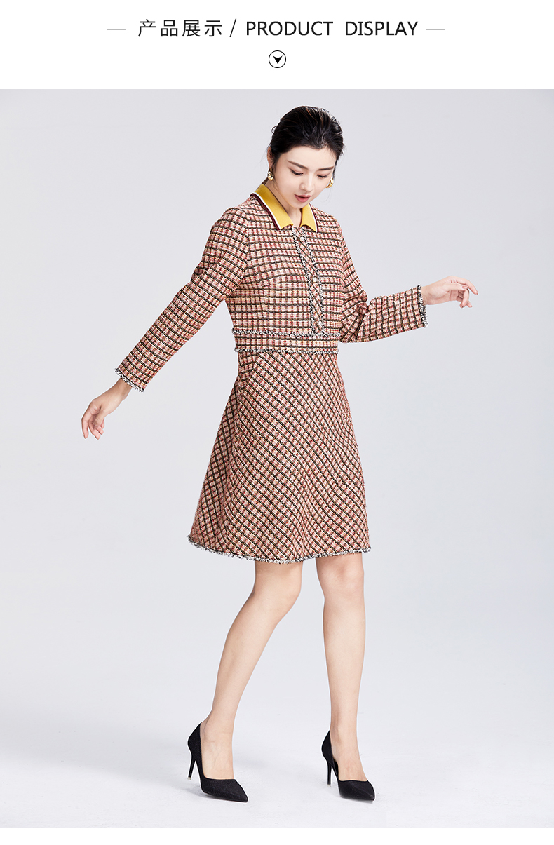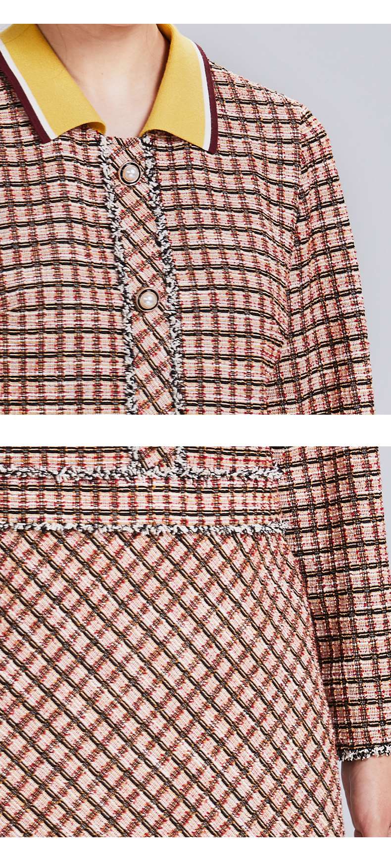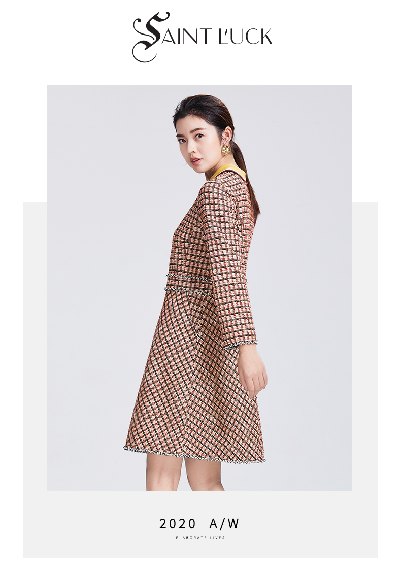 SAINT L’UCK/ 圣媛女装气质小香风Polo领花边格纹针织连衣裙SA320L01