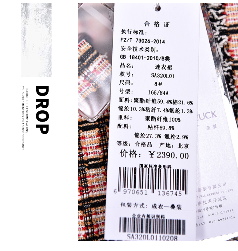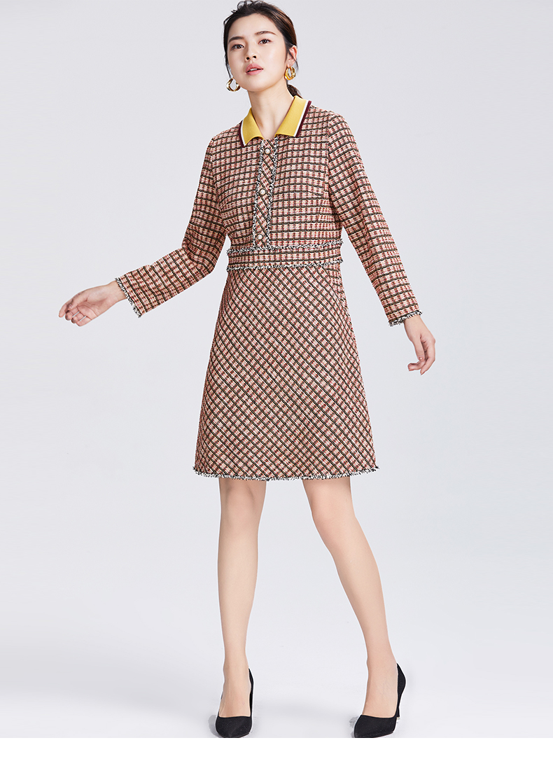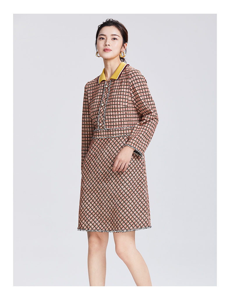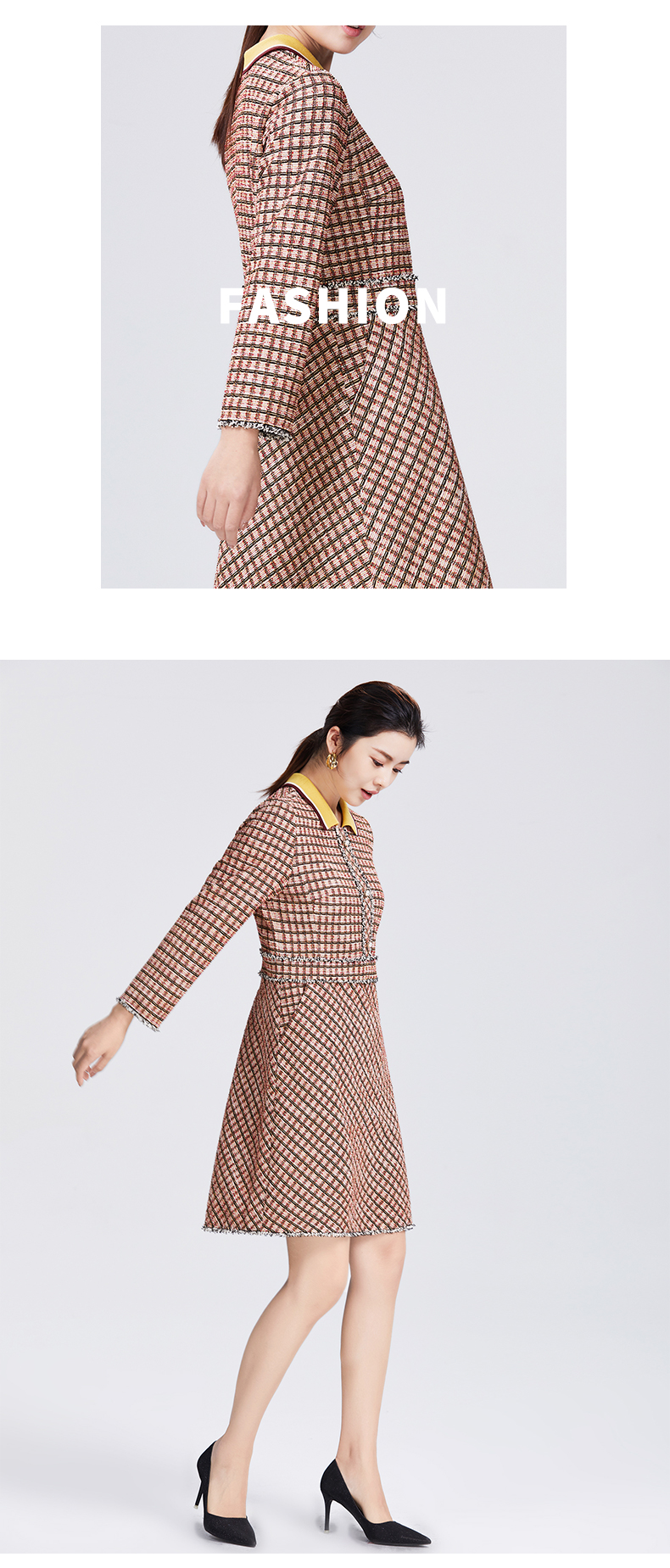 SAINT L’UCK/ 圣媛女装气质小香风Polo领花边格纹针织连衣裙SA320L01