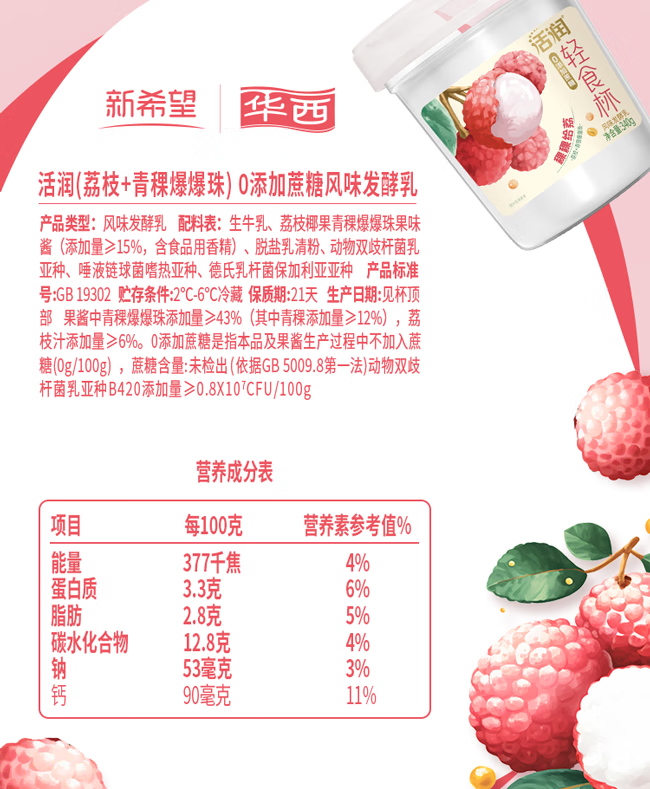 新希望稞稞给荔发酵乳340g