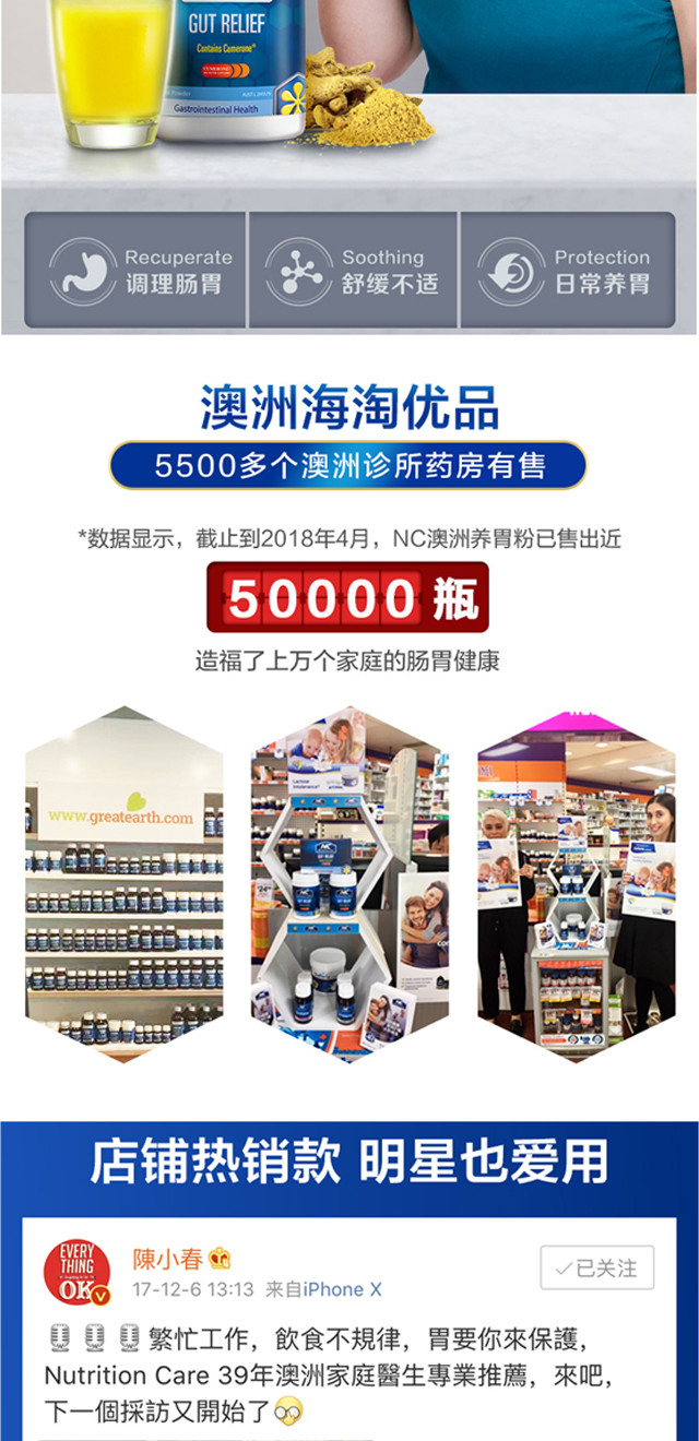 【限时折扣】陈小春同款.NutritionCare澳洲养胃粉 调理肠胃成人胃胀气 幽门螺杆150g