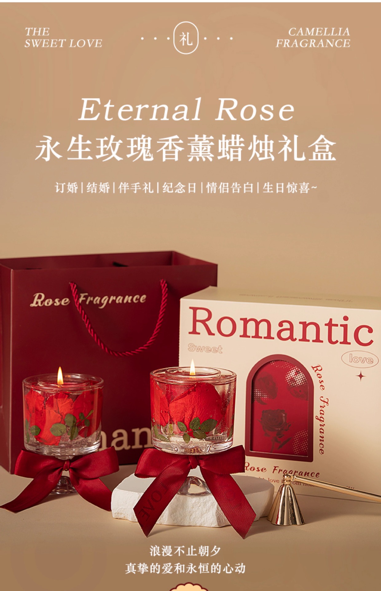 【节日浪漫礼物】喜上枝头 永生玫瑰大豆蜡 高奢香薰礼 盒高奢伴手礼 结婚订婚礼物