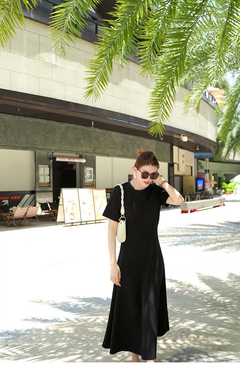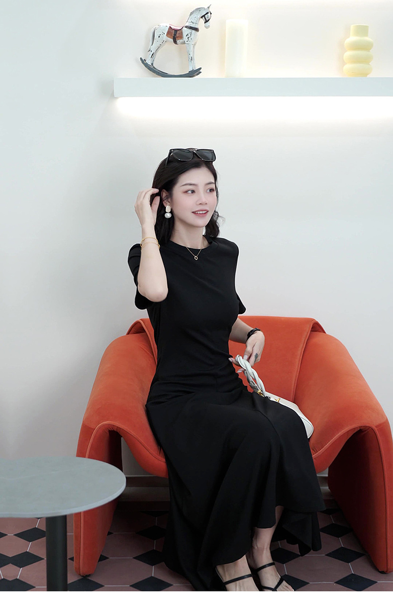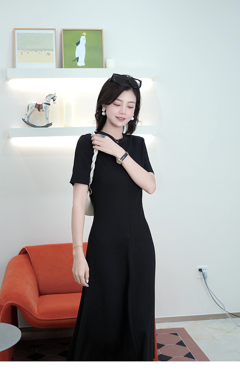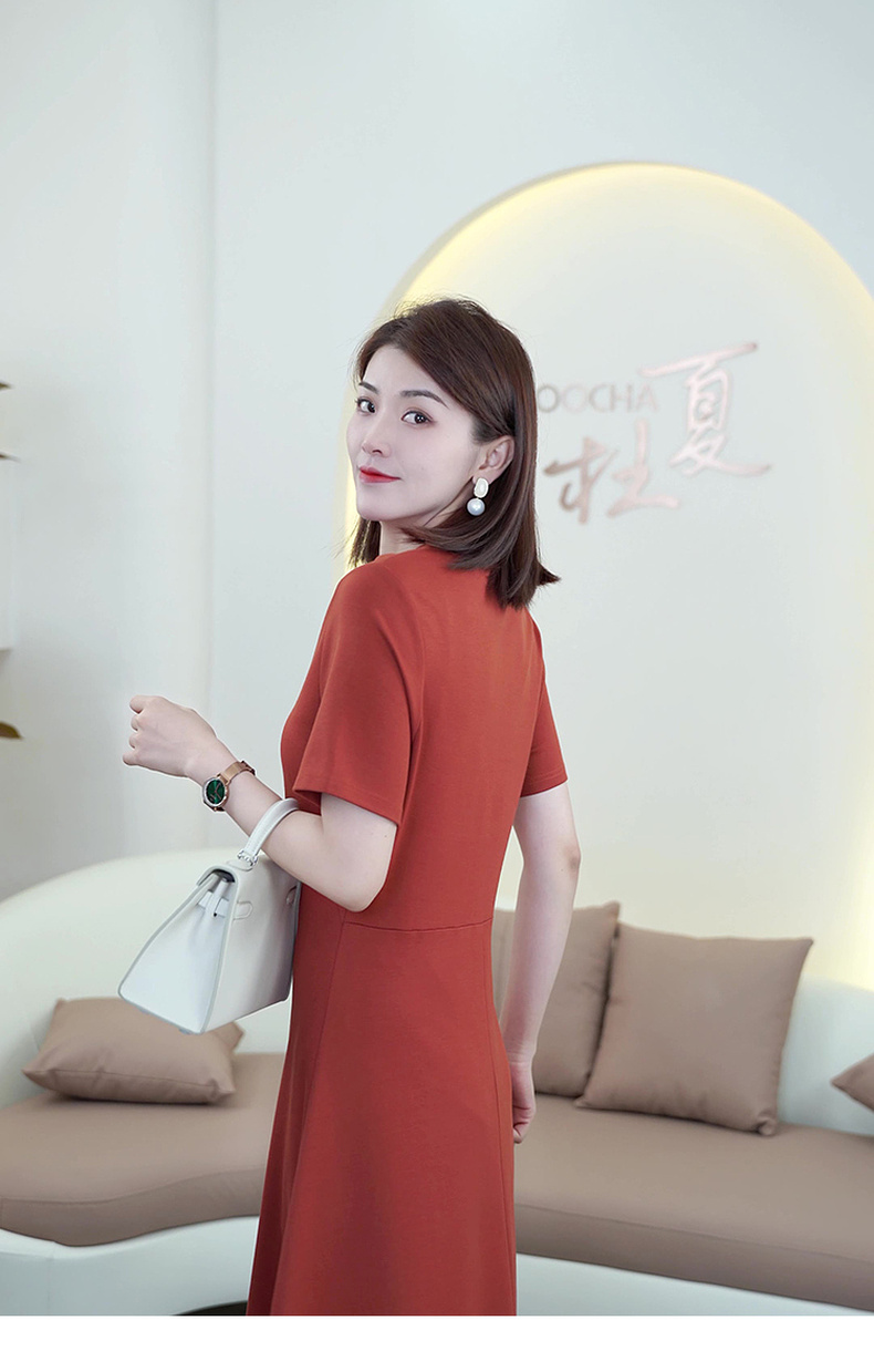 两三事辣妹穿搭 莫奈花园风清凉新款通勤简约收腰修身短袖连衣裙