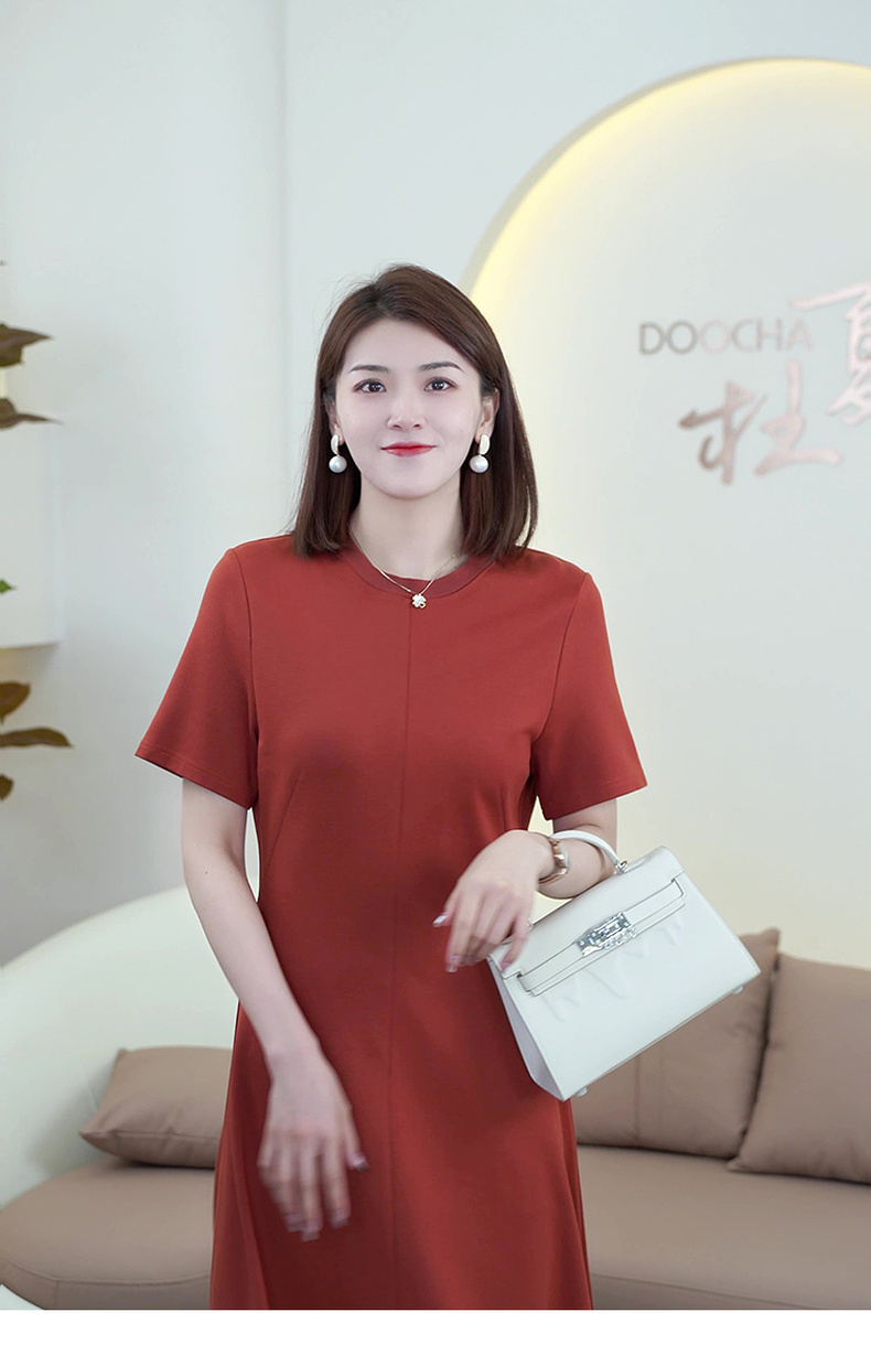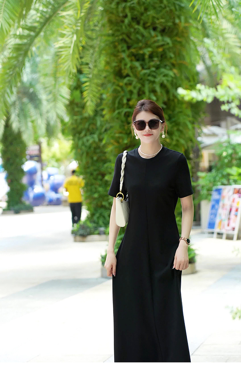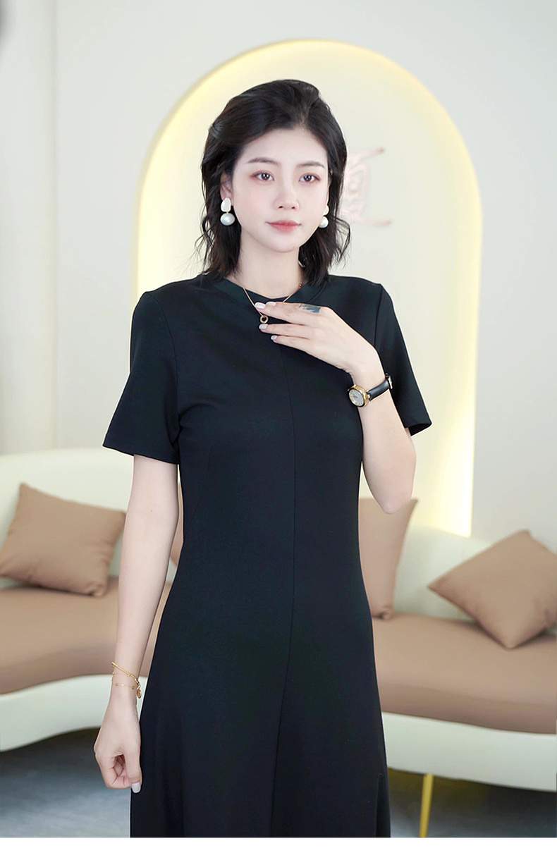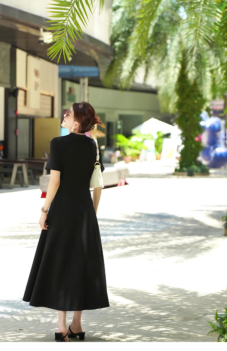 两三事辣妹穿搭 莫奈花园风清凉新款通勤简约收腰修身短袖连衣裙