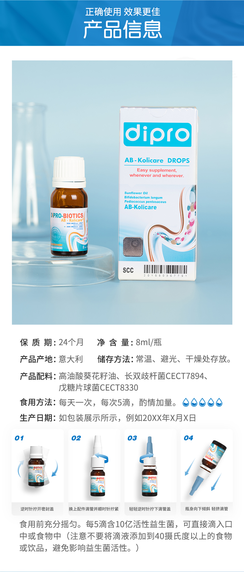 【迪辅乐dipro】AB-Kolicare安比宝益生菌8ml/瓶儿童长双歧杆菌滴剂益生菌【72小时发货】
