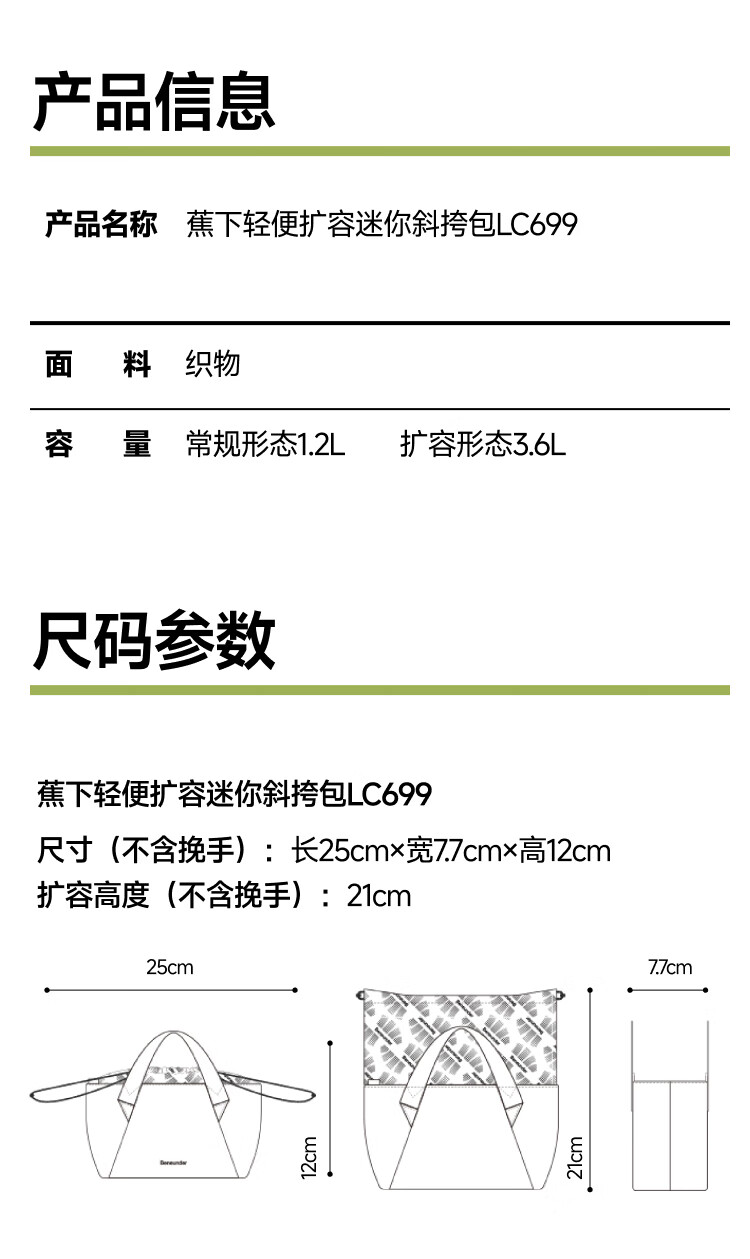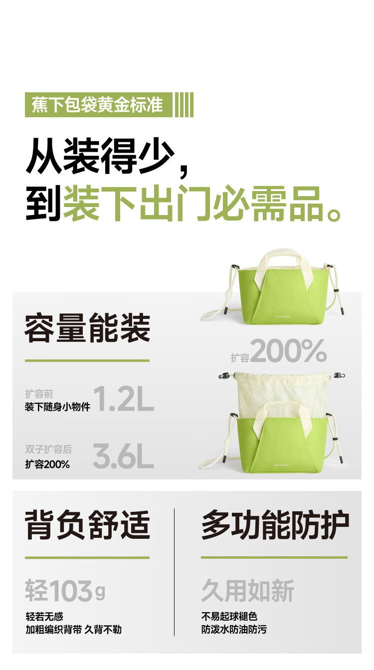 蕉下轻便扩容斜挎包迷你包包女包旅行包单肩包托特包